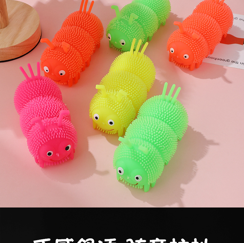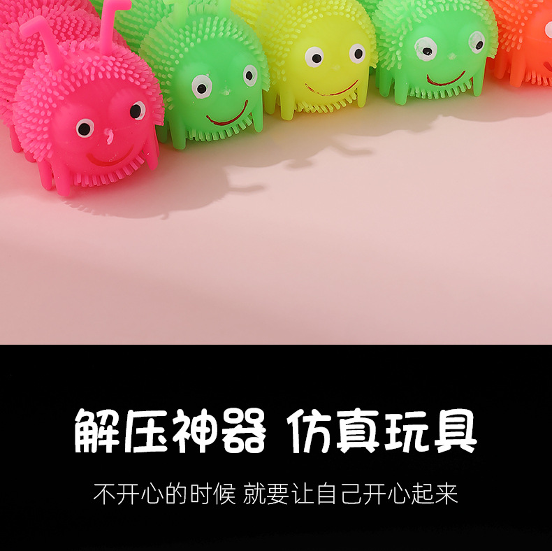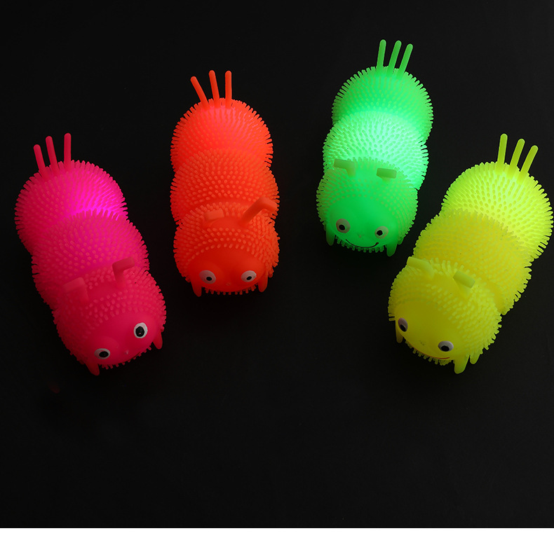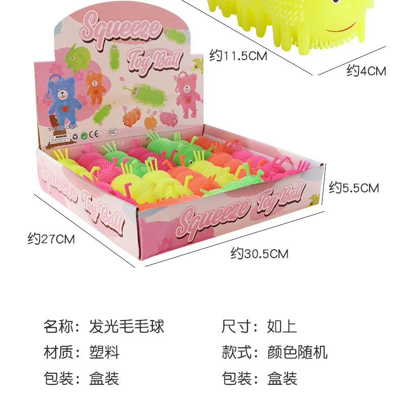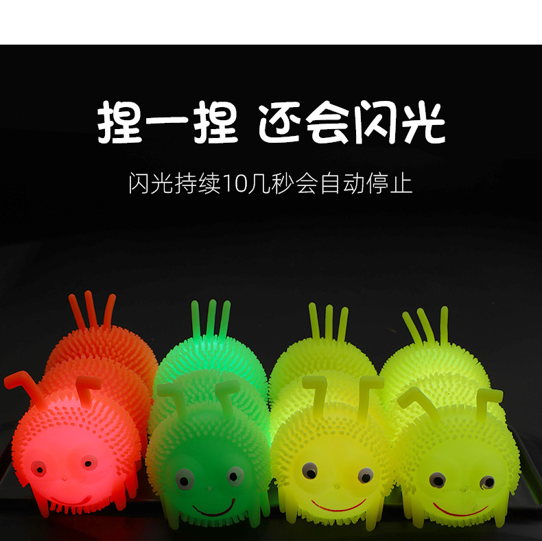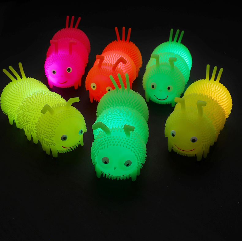Venta caliente Caterpillar bola elástica luminosa Bola de ventilación de flash Luminoso puesto de juguete suministro de plaza de mercado nocturno