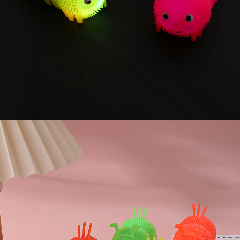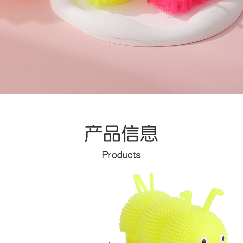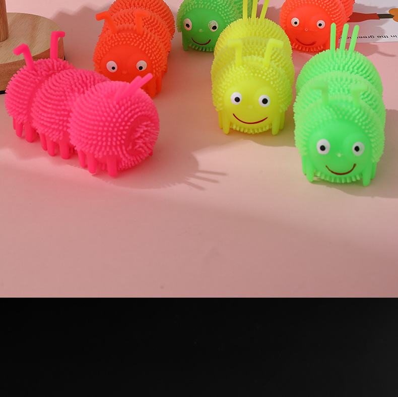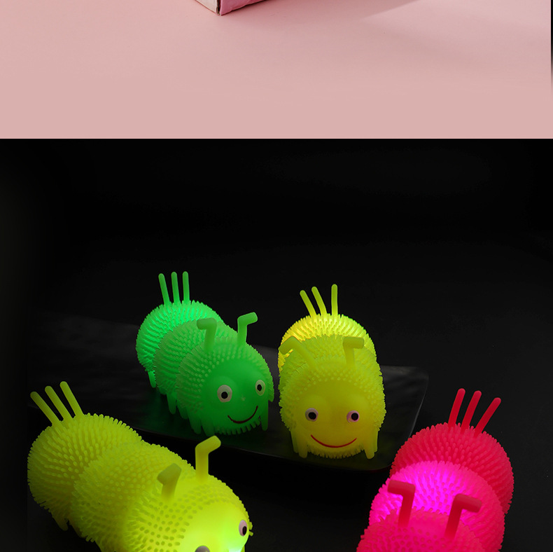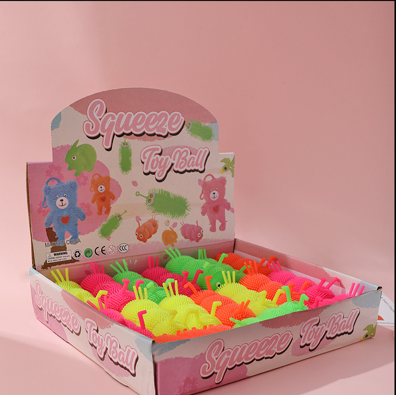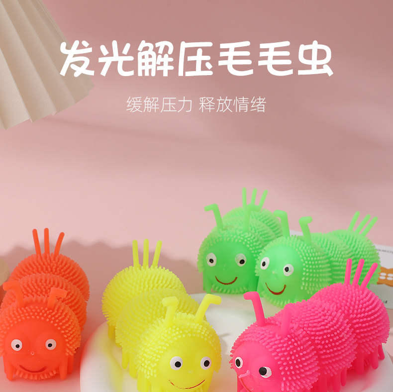 Venta caliente Caterpillar bola elástica luminosa Bola de ventilación de flash Luminoso puesto de juguete suministro de plaza de mercado nocturno