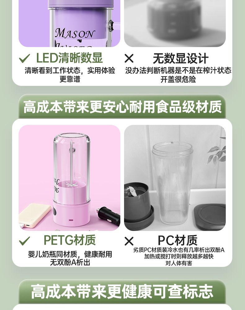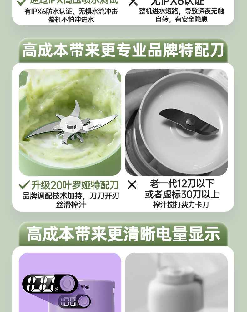 Exprimidor portátil con cuchilla de 12 hojas, inalámbrico para batidos