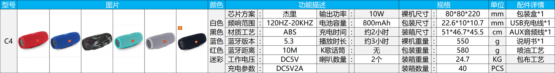 CHARGE4 transfronterizo onda de choque 4ta generación altavoz Bluetooth subwoofer inalámbrico mini audio tarjeta portátil para exteriores