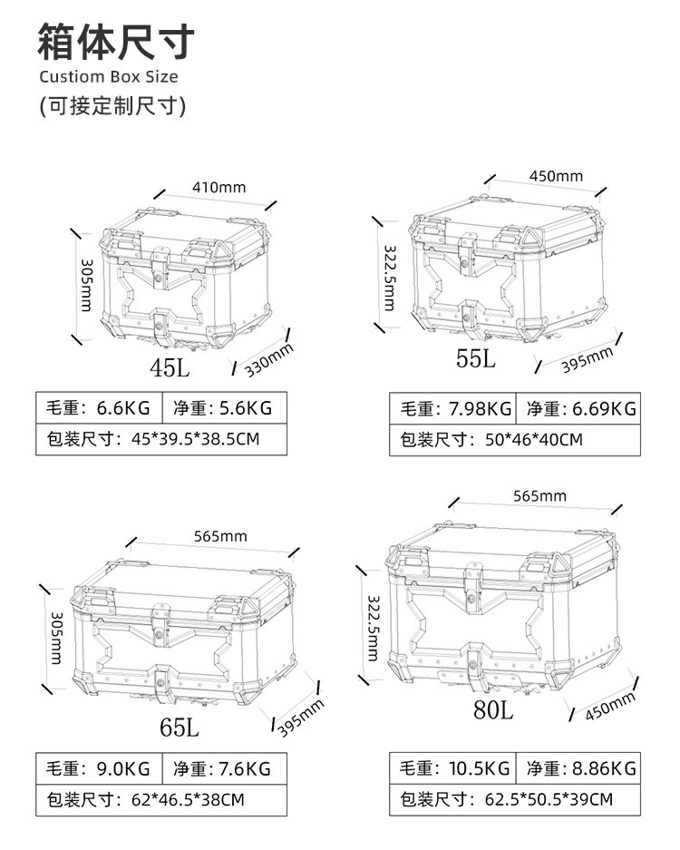 Caja de cola de aleación de aluminio al por mayor de fábrica X caja de cola de motocicleta en relieve