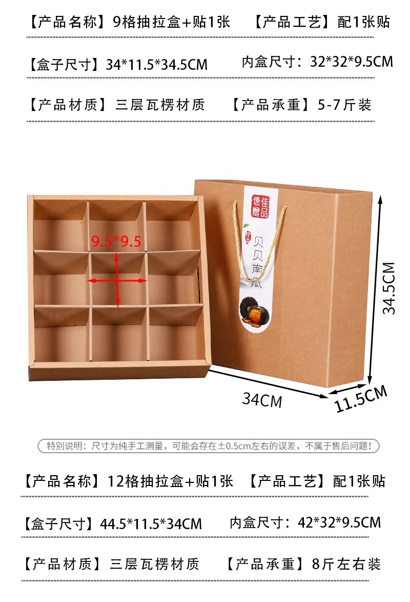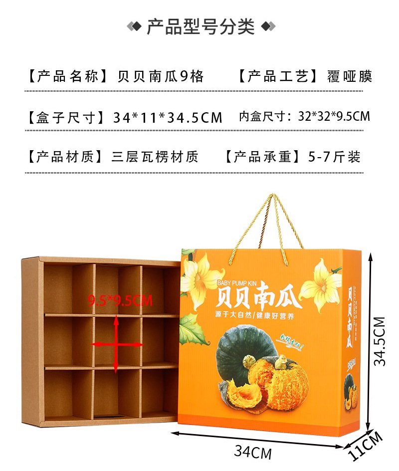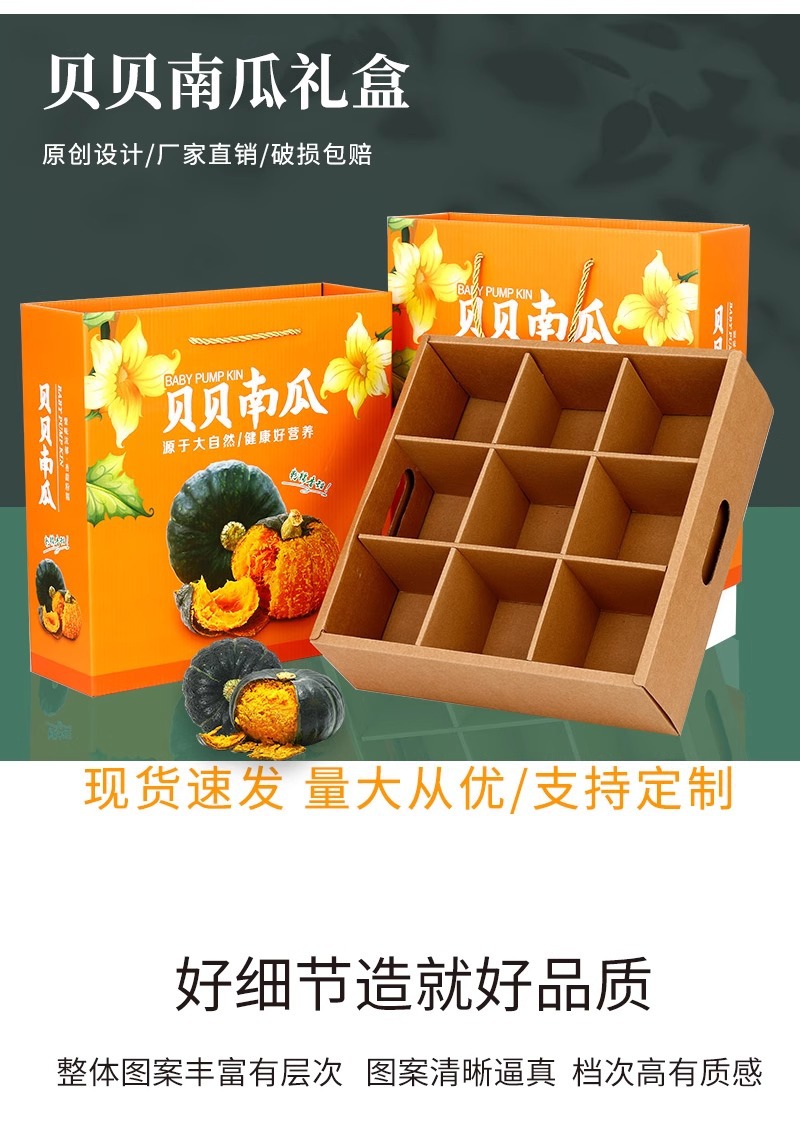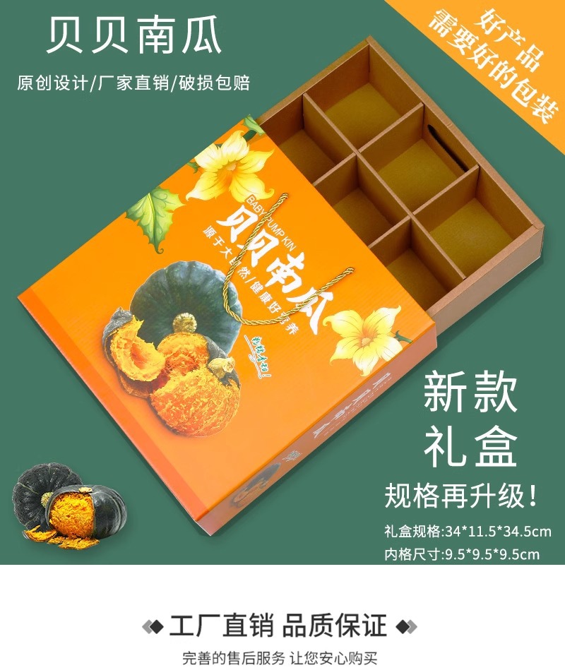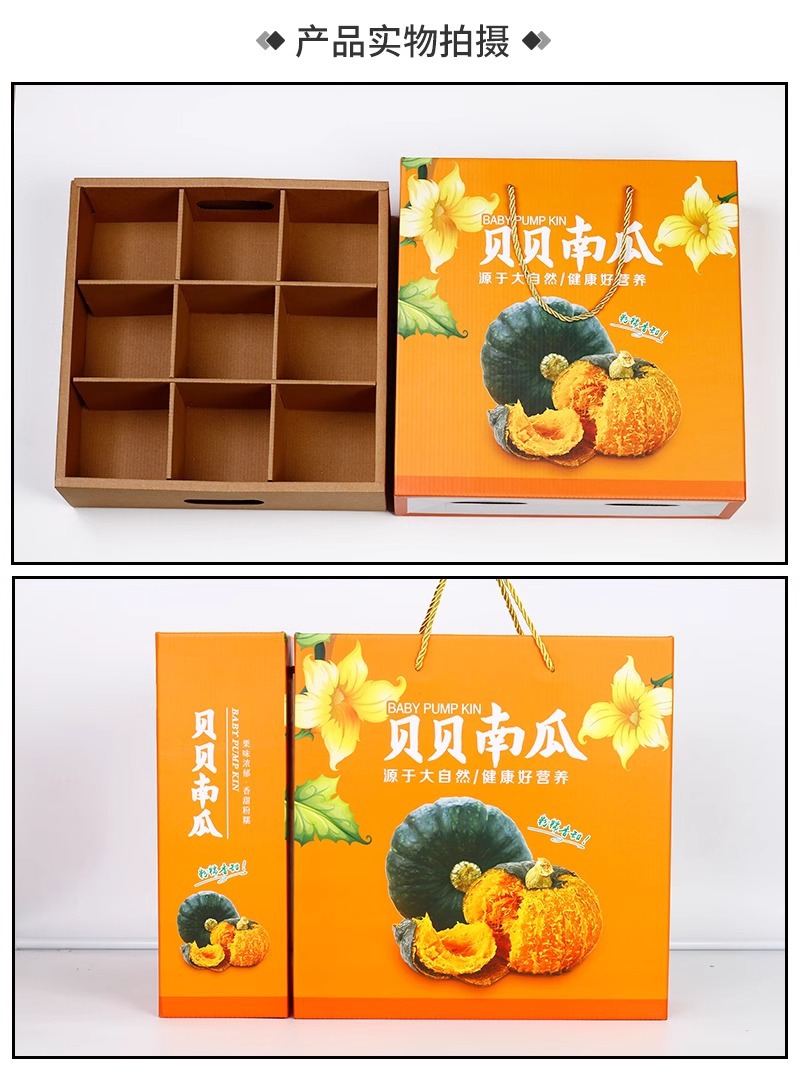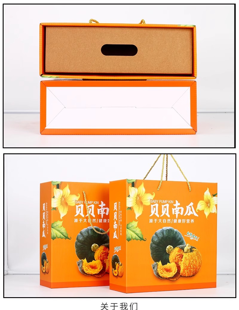 Caja de embalaje de calabaza Beibei 6-10 kg Caja de avión de color de calabaza de castaña Caja de papel personalizada