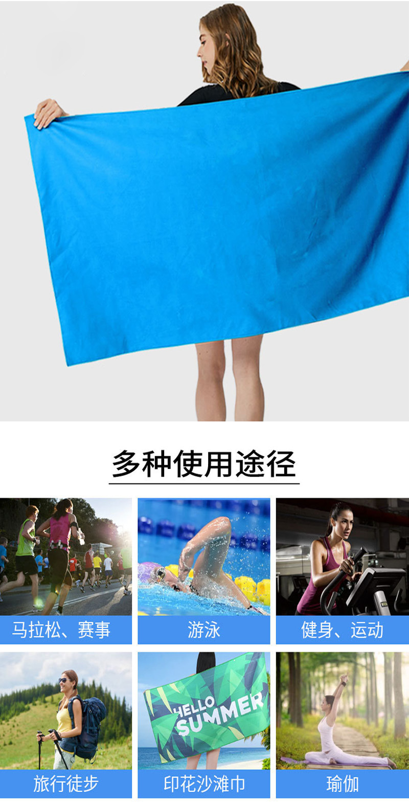 Toalla deportiva transfronteriza de terciopelo de doble cara Toalla de microfibra de secado rápido Toalla de playa de yoga portátil absorbente