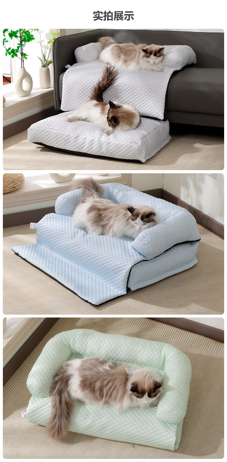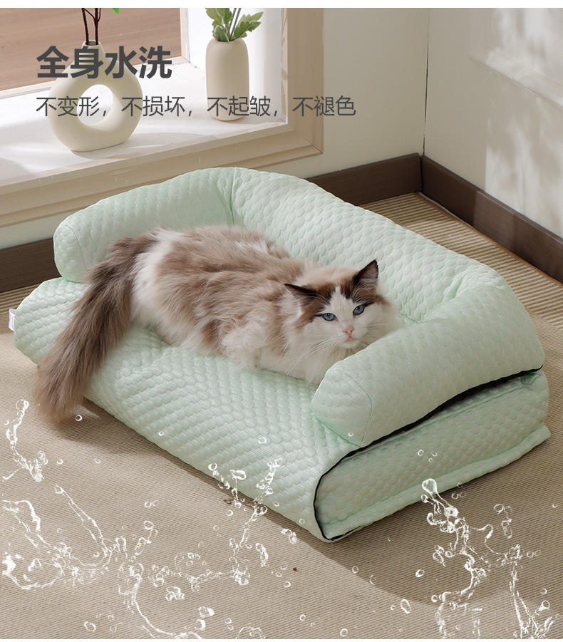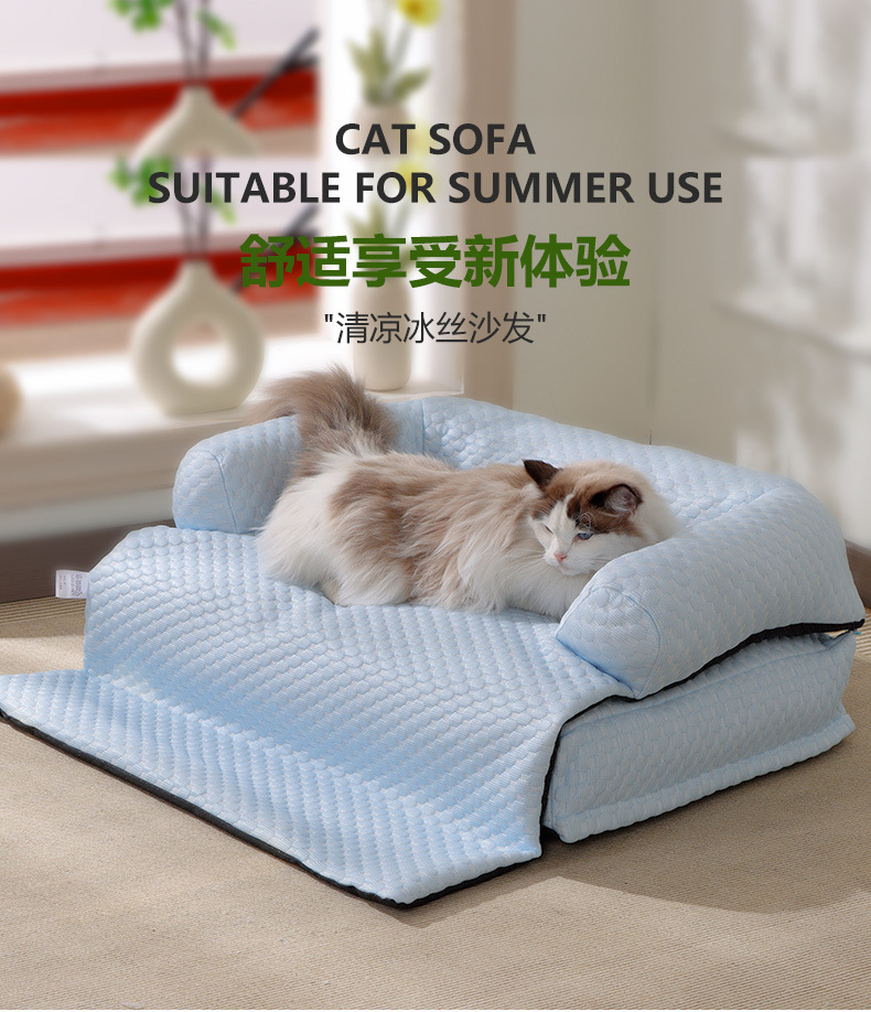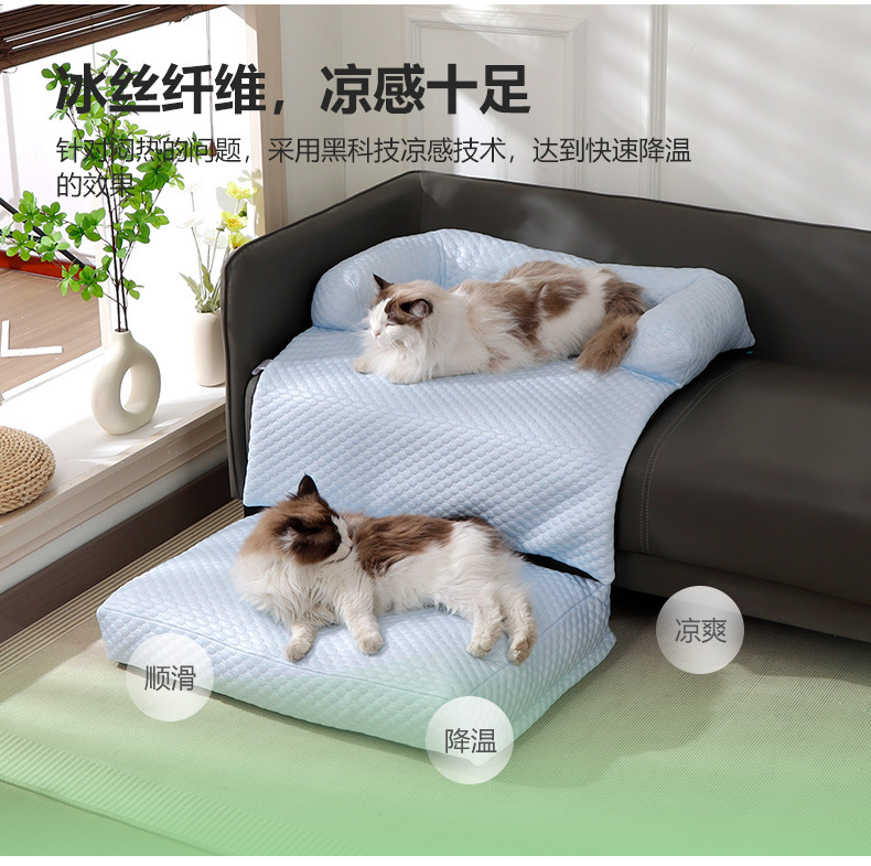 Gran nido para gatos, sofá para gatos fresco en verano, cojín para gatos de seda helada, cojín para perros desmontable, cama para perros, cama para gatos, suministros para mascotas