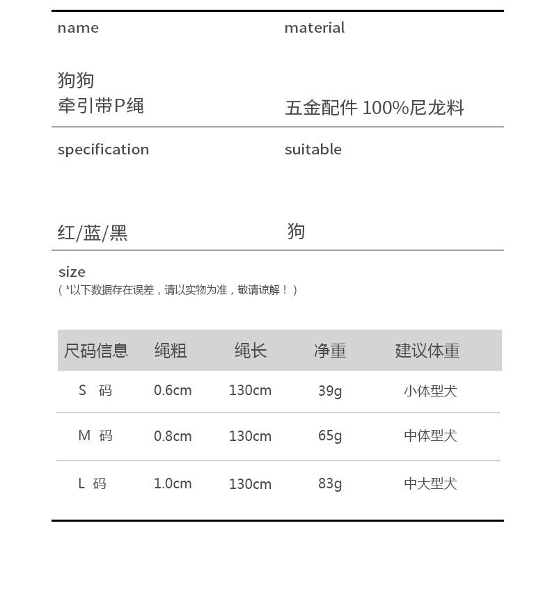 Fabricante en stock P collar de cadena perro mediano y pequeño cuerda de tracción de perro a prueba de explosiones cuerda de tracción de mascota gato resistente a la tracción