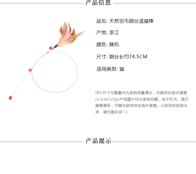 | Colores | Palo de gato divertido de plumas de alambre,Pez pequeño palo de gato divertido,Ratón divertido palo de gato,Palo teaser de gato de primavera,Palo de gato de oruga (color aleatorio) |