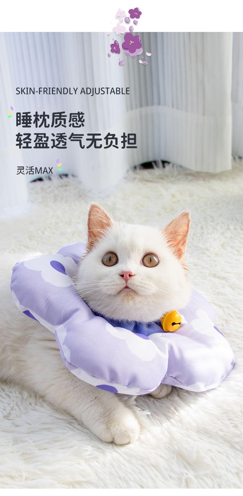 Anillo Elizabeth ajustable, gato antiincrustante, cuello para perro, mascota, anti-lamiendo, collar de esterilización de anillo suave blanco Elisa