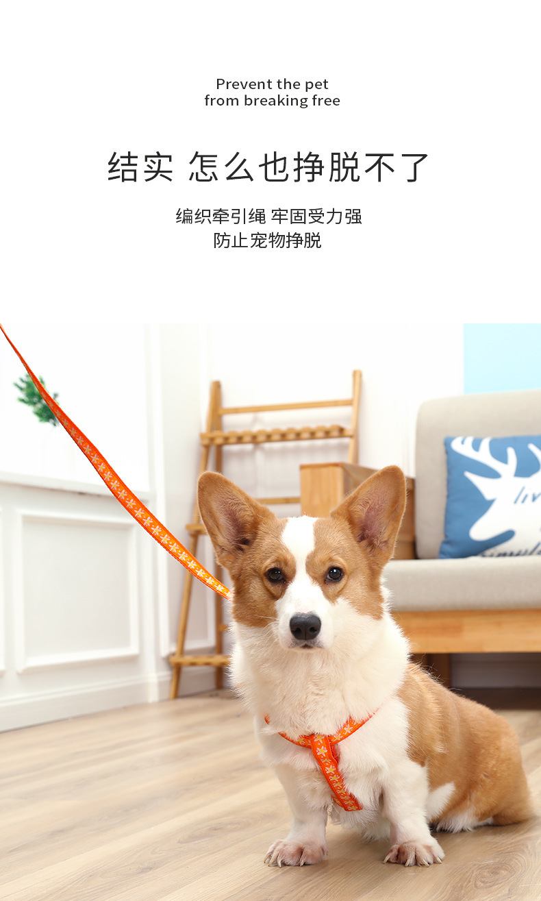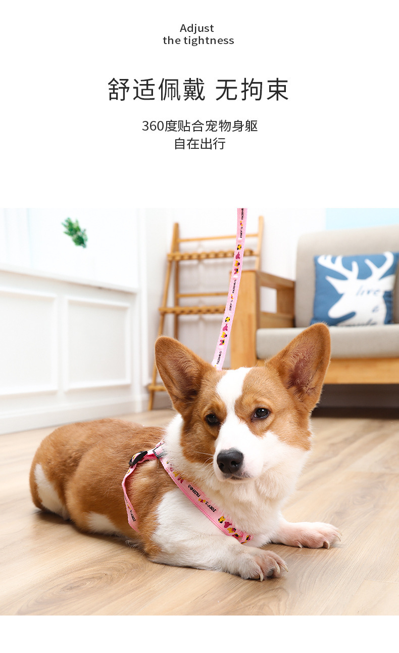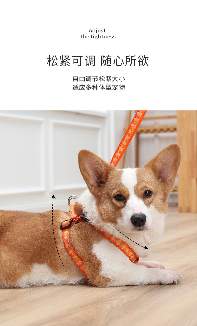 Cuerda de tracción para mascotas, correa para el pecho, pequeño y mediano Teddy Corgi, gato y perro paseando, juego de cuerda de tracción telescópica, impresión en forma de trabajo