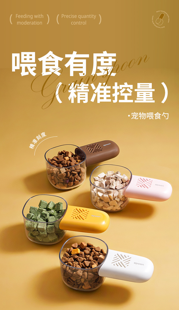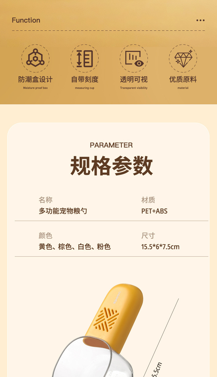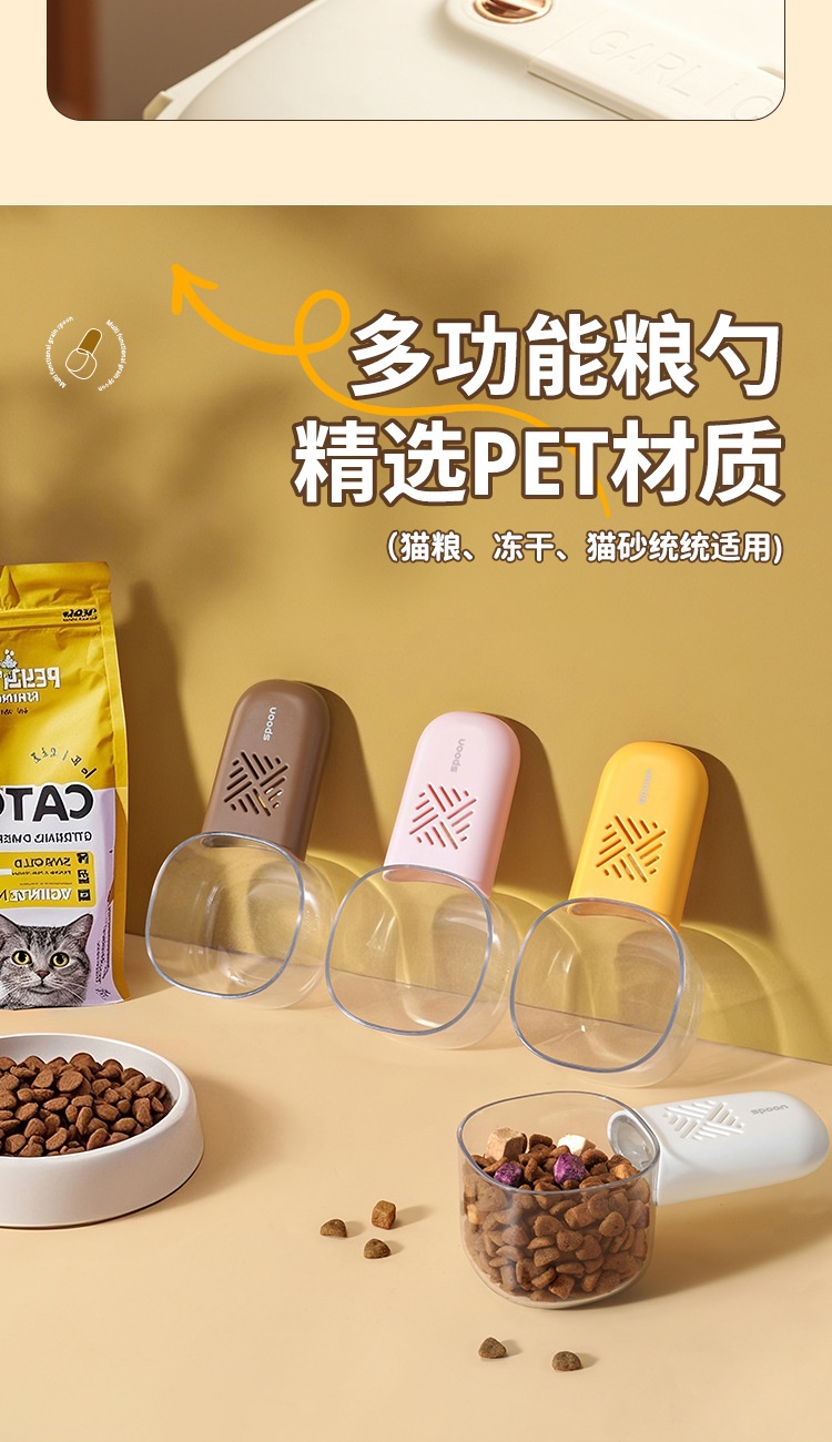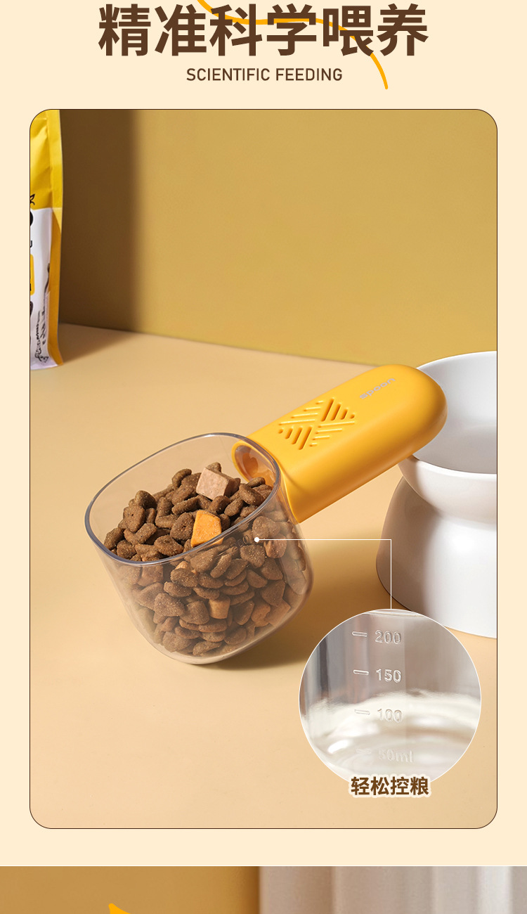 Nuevo estilo comida para gatos comida para perros cuchara de comida para mascotas cuchara de medición a prueba de humedad con escala para gatos y perros suministros de cuchara de arroz al por mayor
