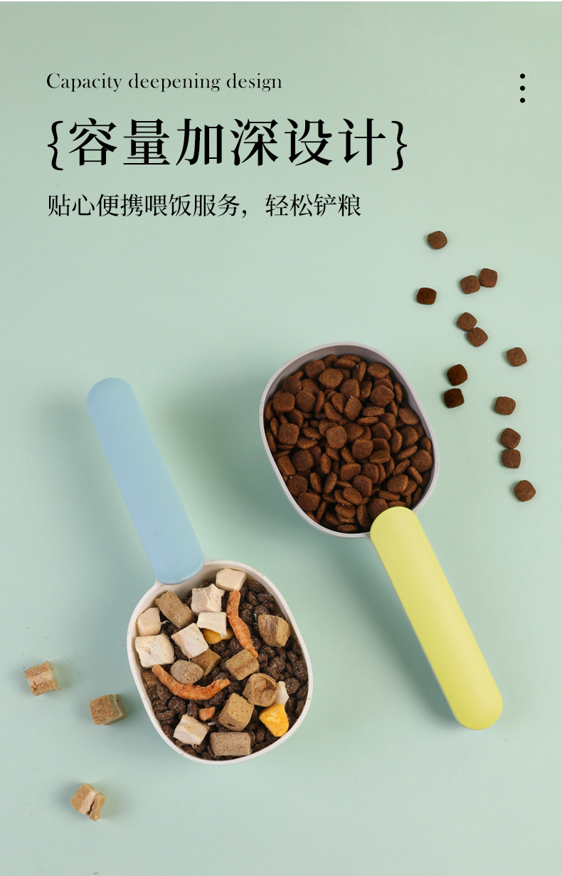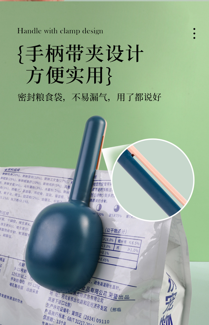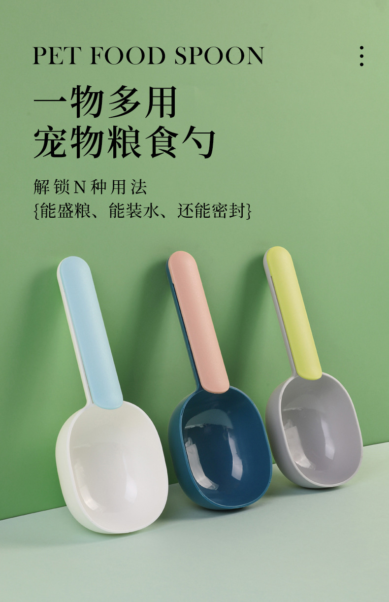 Cuchara de comida para mascotas transfronteriza con clip de sellado Cuchara de comida para gatos Cuchara de comida para perros Cuchara de alimentación para mascotas Cuchara de comida para mascotas integrada al por mayor