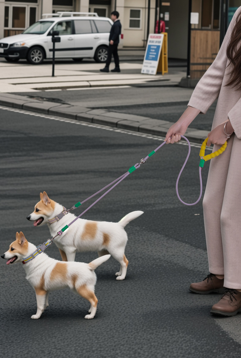 Uno para dos a prueba de explosiones, cuerda para pasear al perro de dos cabezas, cuerda p, cuerda redonda de nailon de color, cuerda para pasear al perro al aire libre, cuerda para pasear al perro