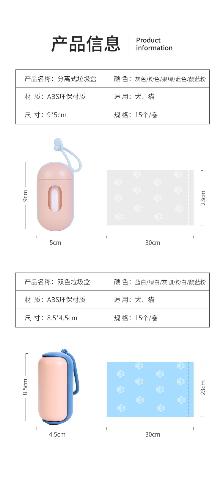Fabricante Bala en forma de caja de basura para mascotas bolsa de perro bolsa de aseo organizador bolsa de basura en stock al por mayor