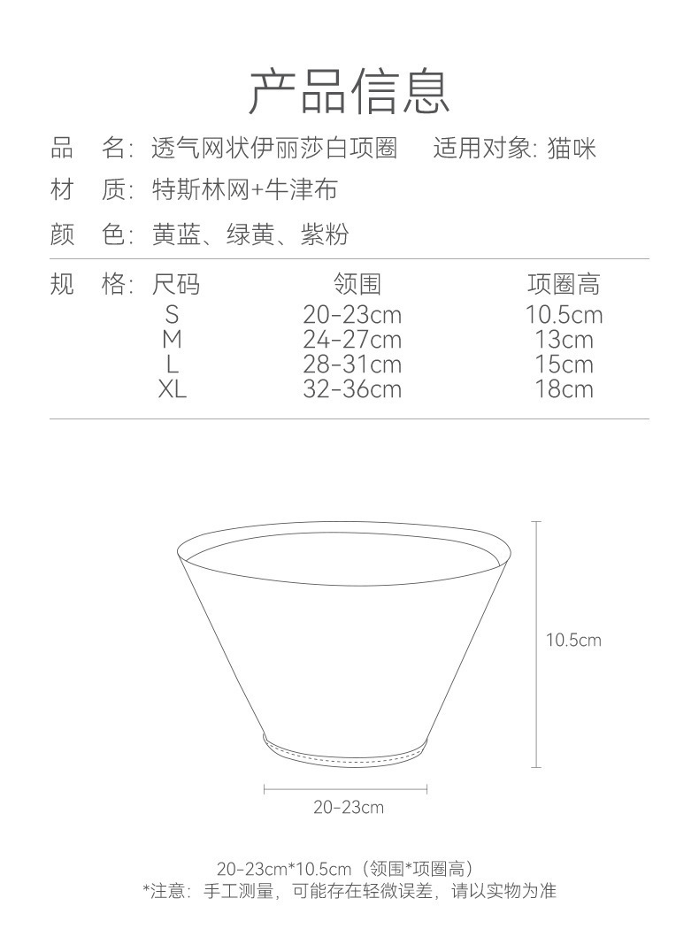 | Color | S (circunferencia del cuello aplicable 20-23cm),M (circunferencia del cuello aplicable 24-27cm),L (circunferencia del cuello aplicable 28-31cm),XL (circunferencia del cuello aplicable 32-36cm) |