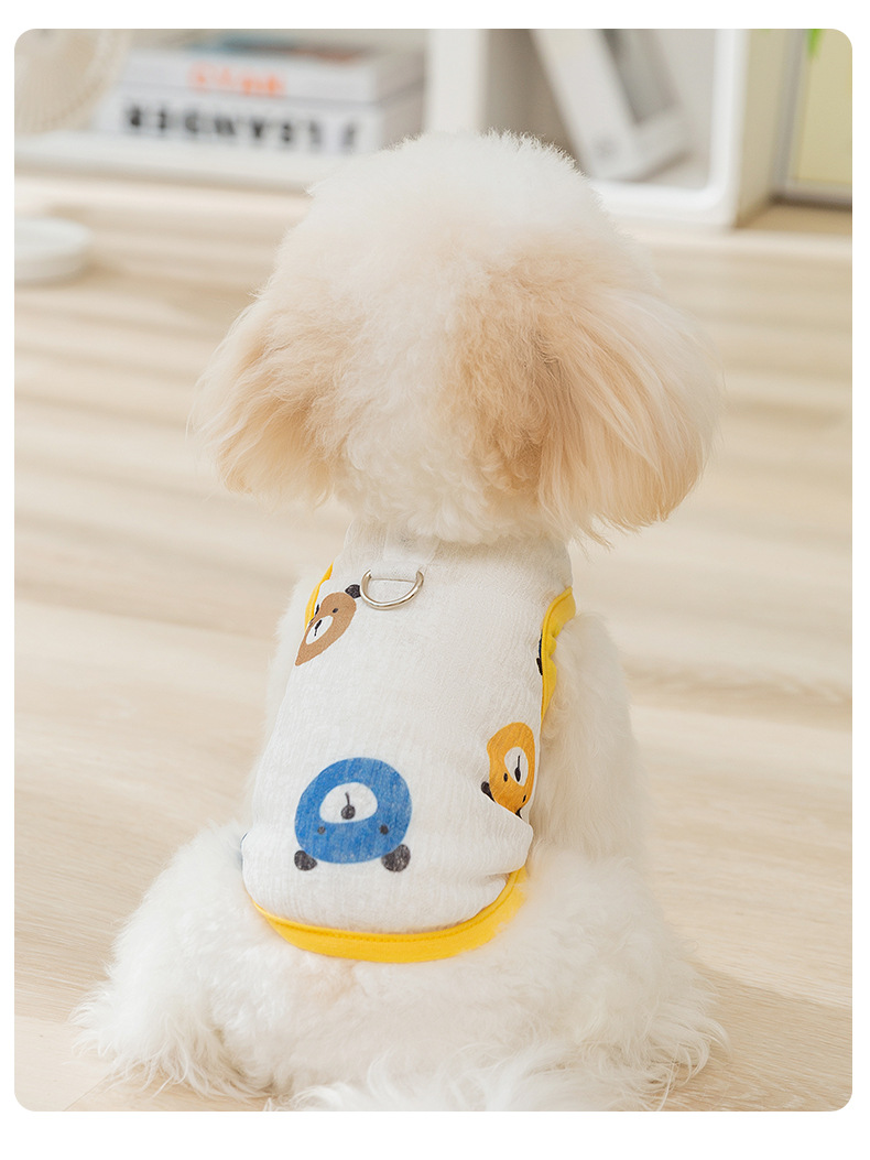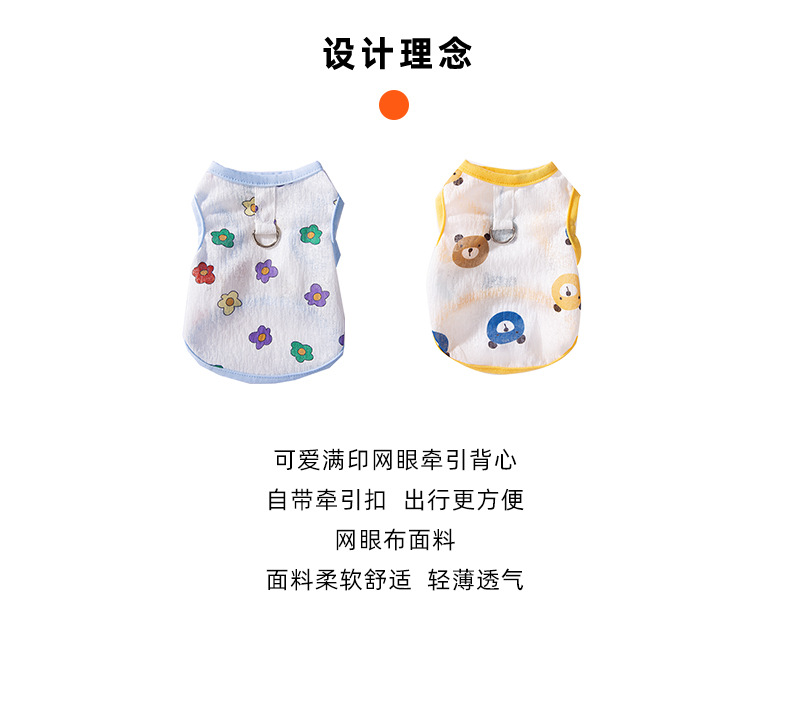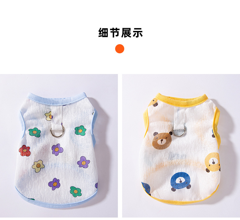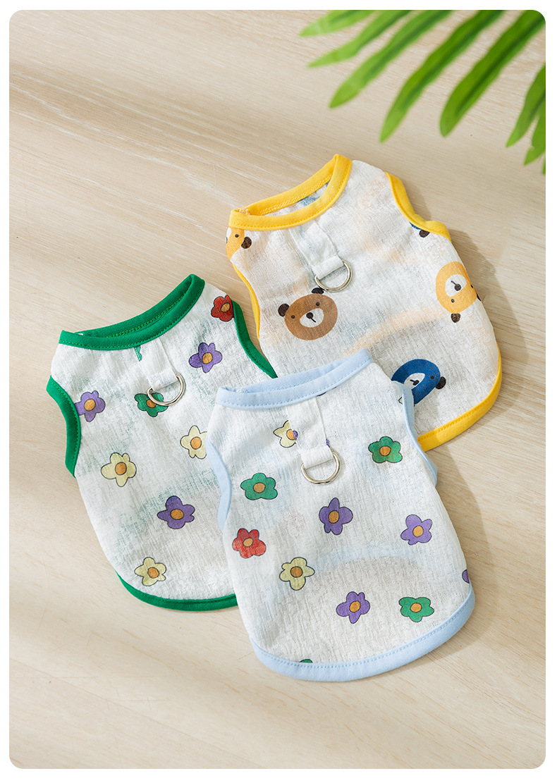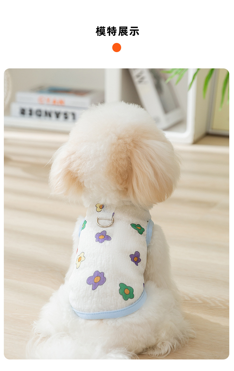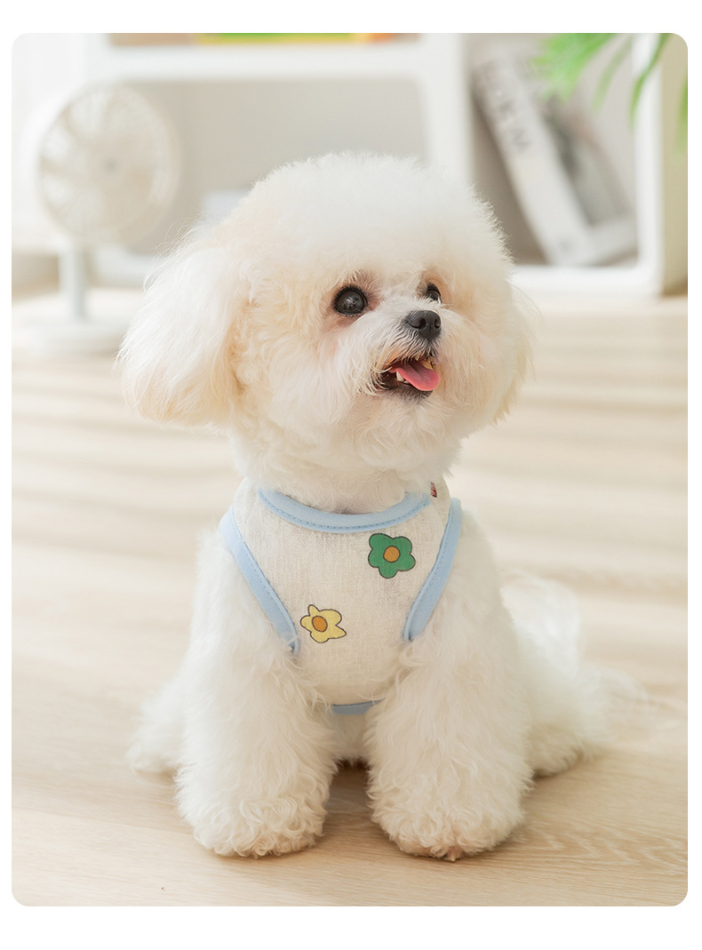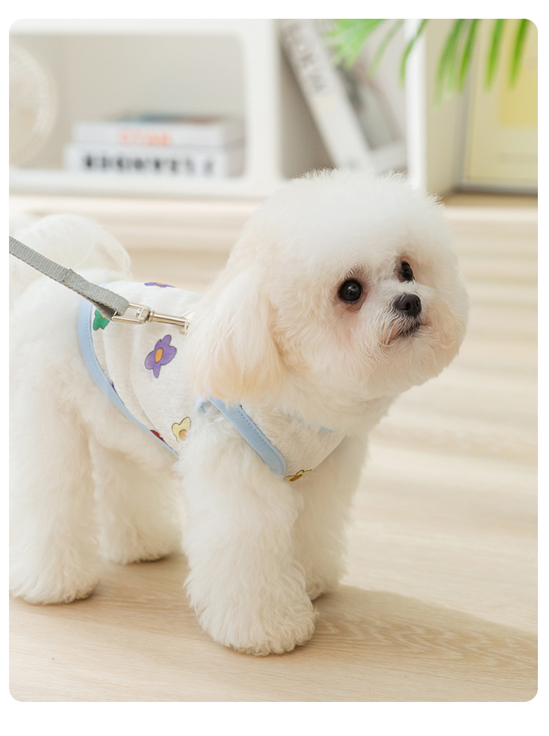 Primavera y verano perro transpirable verano lindo chaleco de remolque de malla de flores de impresión completa perro pequeño gato ropa para mascotas