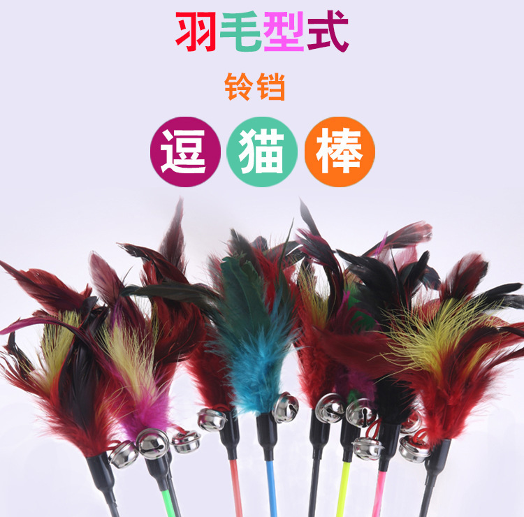 Campana de plumas, palo de gato divertido, juguete de gato resistente a las mordeduras, palo de gato divertido de color grande, suministros para gatos domésticos, suministro directo de fábrica