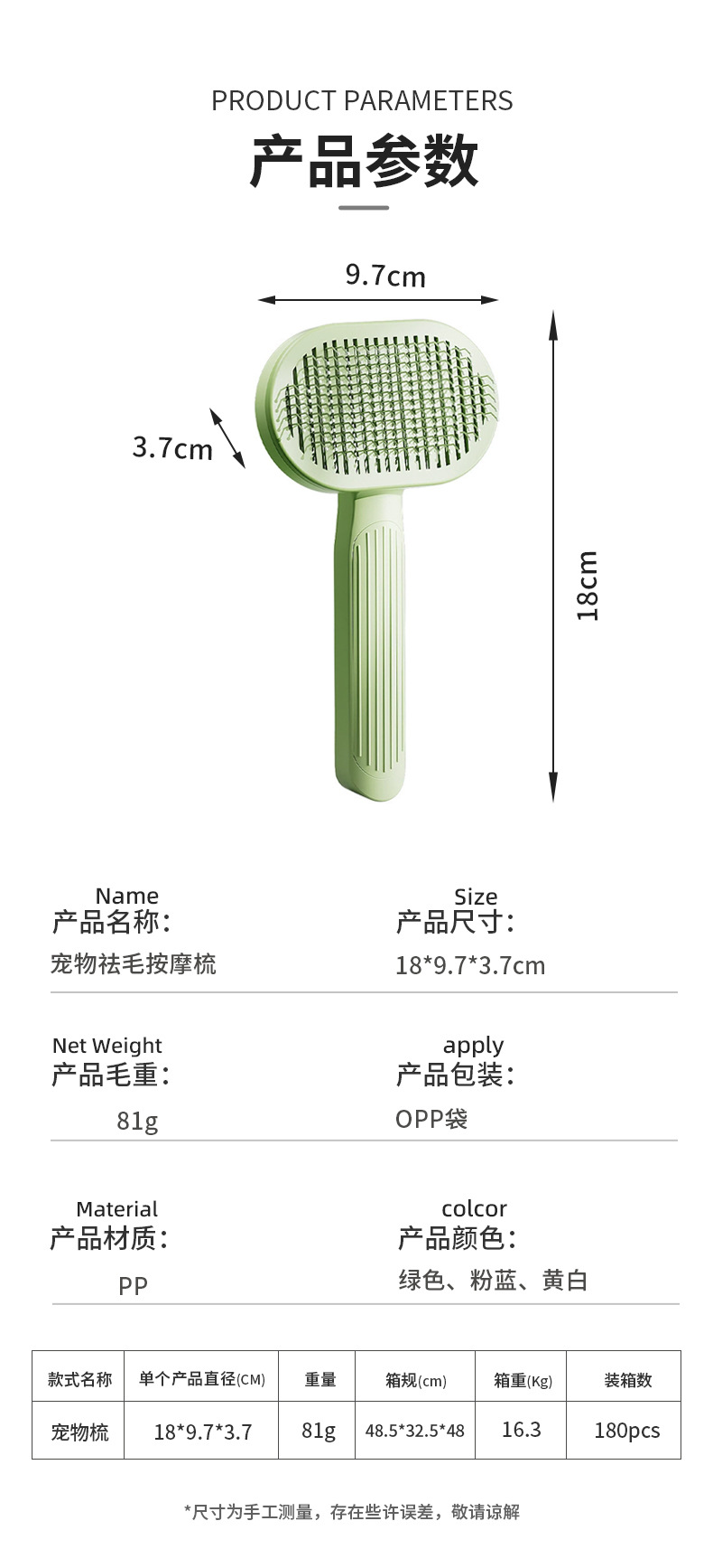 | Especificaciones | Peine para mascotas |