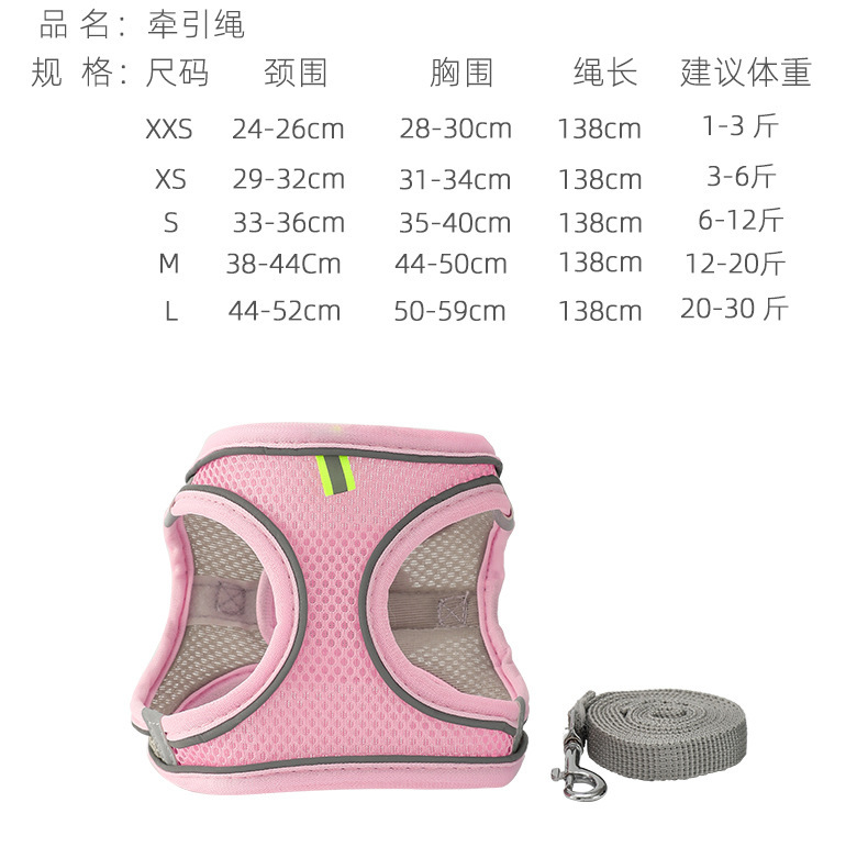 Correa para el pecho para mascotas transfronteriza tipo chaleco perro transpirable gato correa reflectante para pasear cuerda para perros fábrica de suministros para mascotas