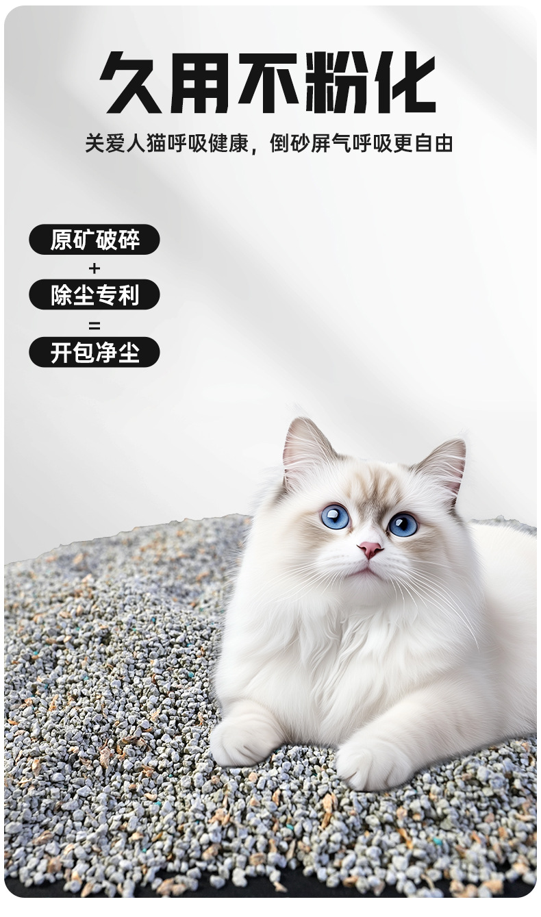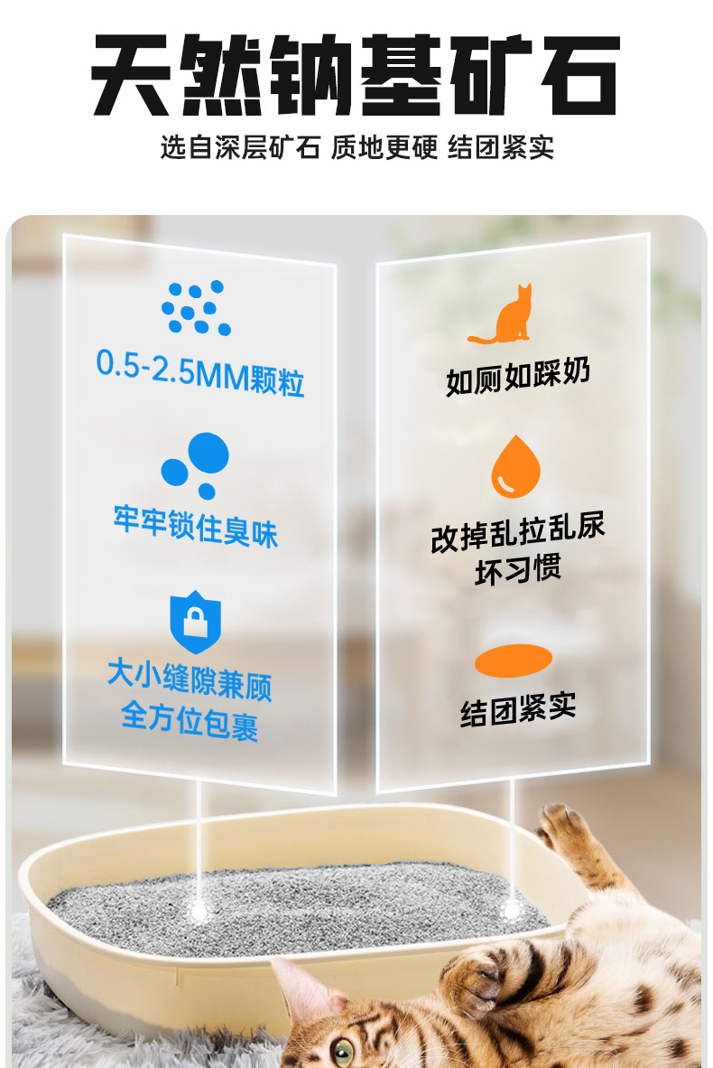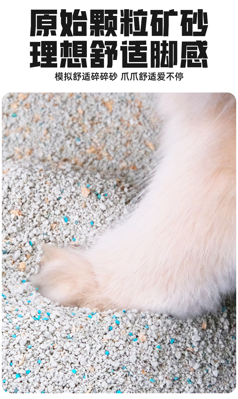 Desodorización de arena mineral, mineral natural a base de sodio, formación de arena para gatos de bajo polvo, absorción de agua, fondo no pegajoso, 9 kg de arena para gatos se puede personalizar