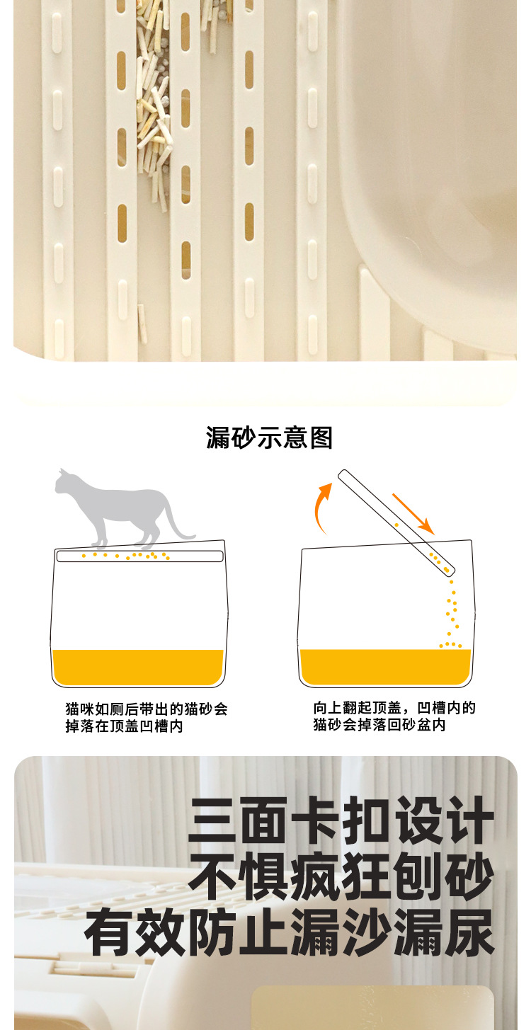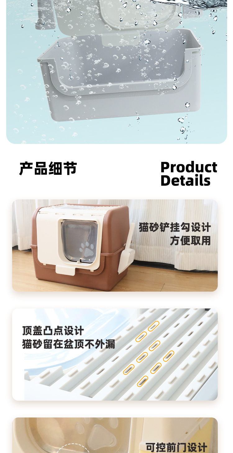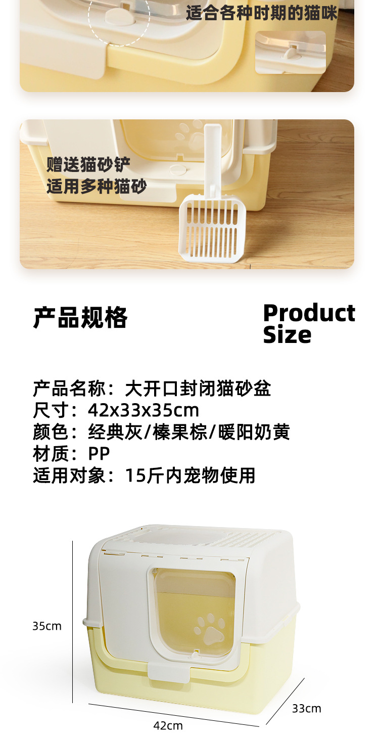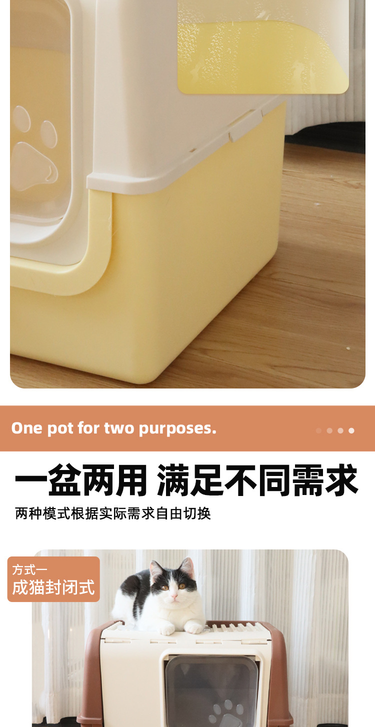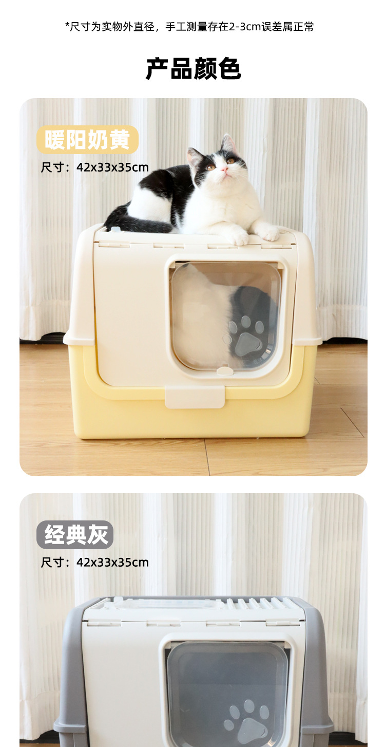 La caja de arena para gatos completamente cerrada es de gran tamaño, a prueba de salpicaduras externas, la entrada superior, la caja de heces para gatos abierta, evita que el inodoro para gatos se desodore