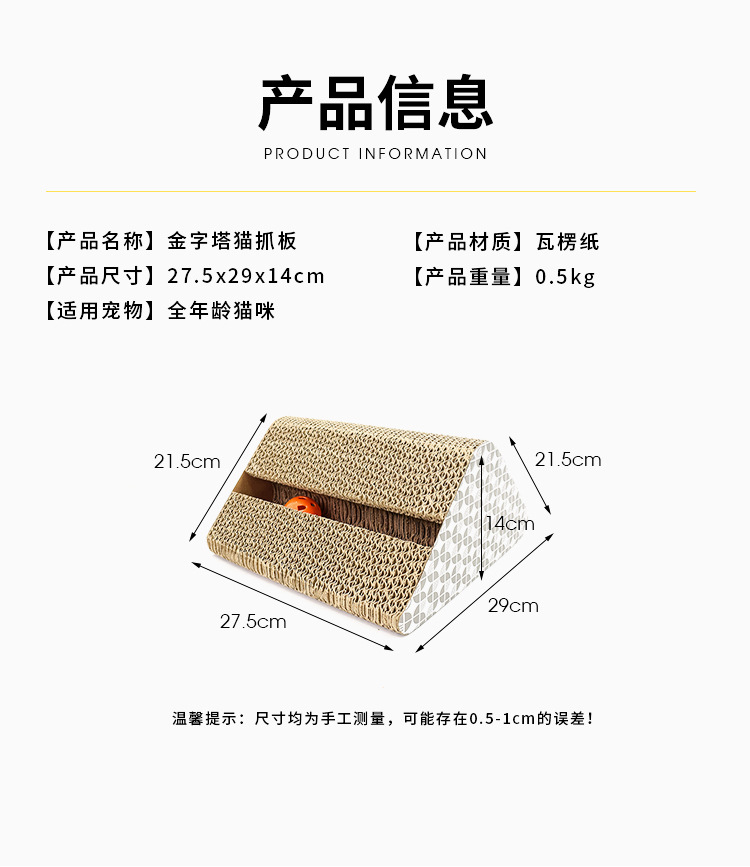 Leyoupai gato de juguete para mascotas garra amoladora gato suministros de papel corrugado triángulo creativo gato tablero del rasguño