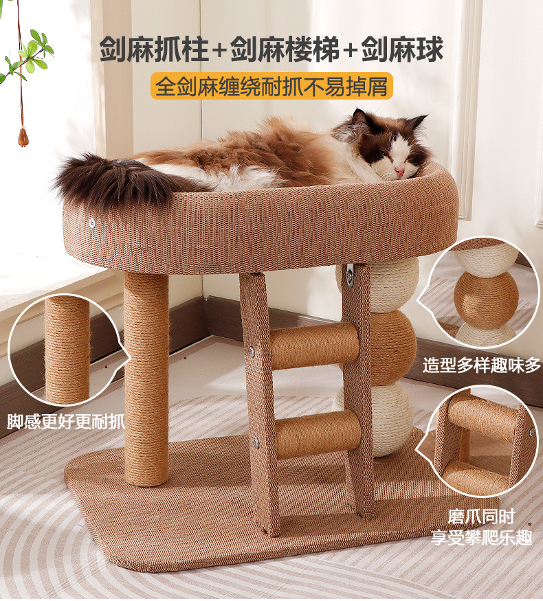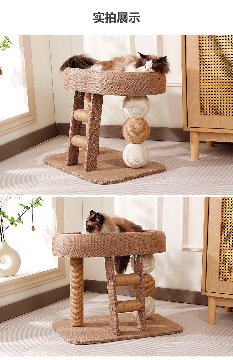 Marco de escalada para gatos, nido para gatos, columna de sisal integrada, garras de pulido, sin caspa, bola de captura de gatos grande, estante para gatos multifuncional, suministros para mascotas