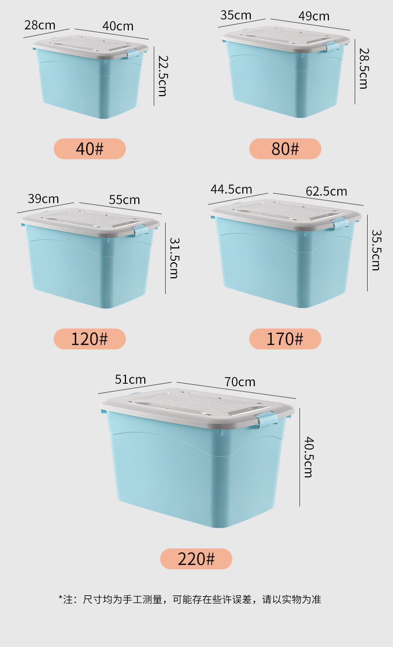 Caja de almacenamiento de polea gruesa de plástico, caja de almacenamiento de ropa, caja de almacenamiento de armario, caja de almacenamiento extra grande para dormitorio de estudiantes