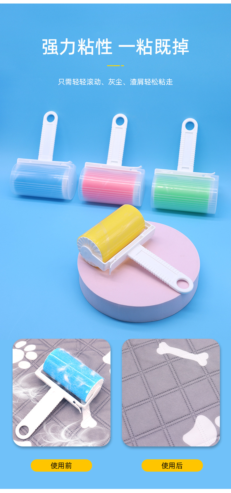 Dispositivo de pelo pegajoso para mascotas, cepillo de pelo para gatos, cepillo de rodillo, limpiador de pelo para perros, dispositivo de depilación para gatos, suministros de depilación para perros y gatos
