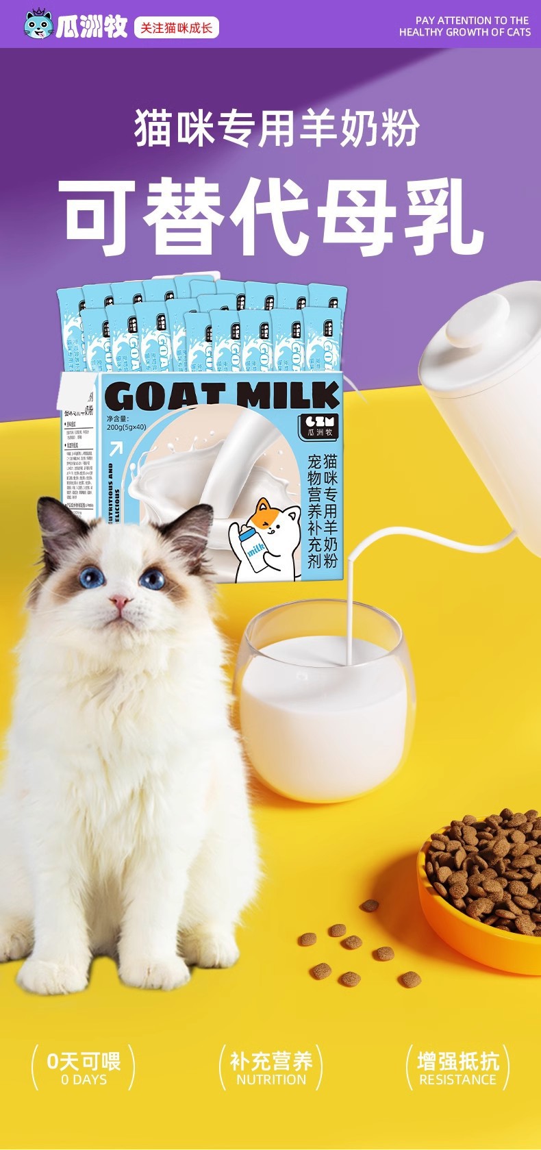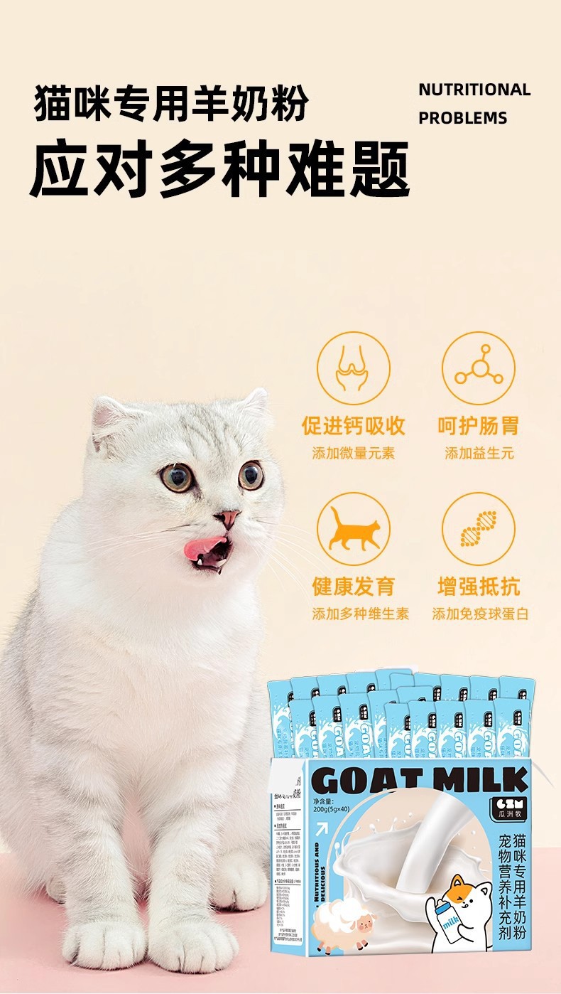 Pet Cabra Leche en polvo Gato Pet Cachorros Gato Especial Leche de cabra Recién nacido Aumento de peso Suplemento de calcio Suplemento nutricional para gatos preñados