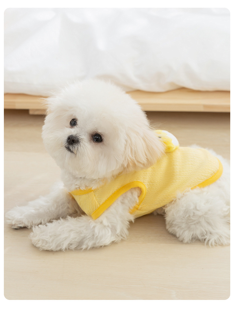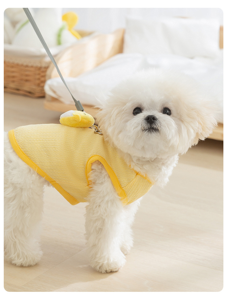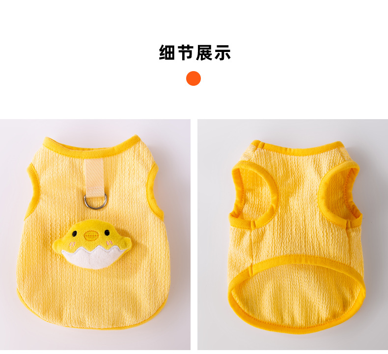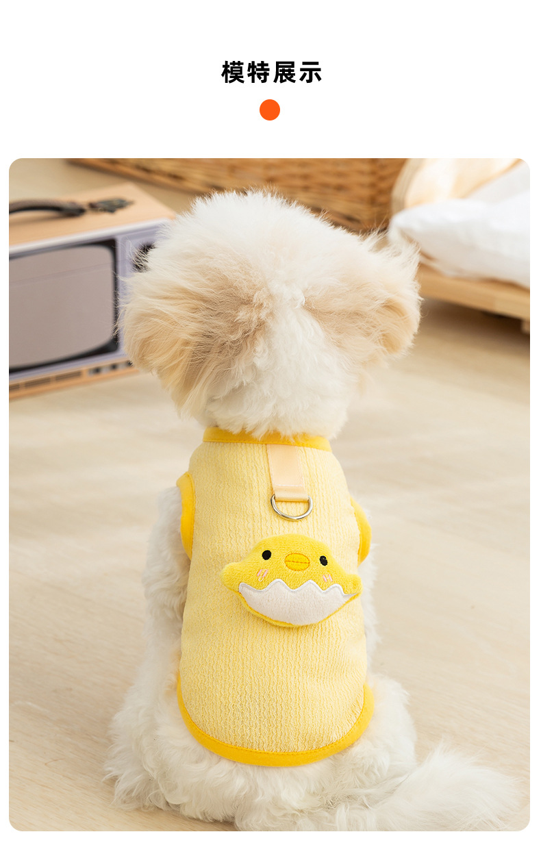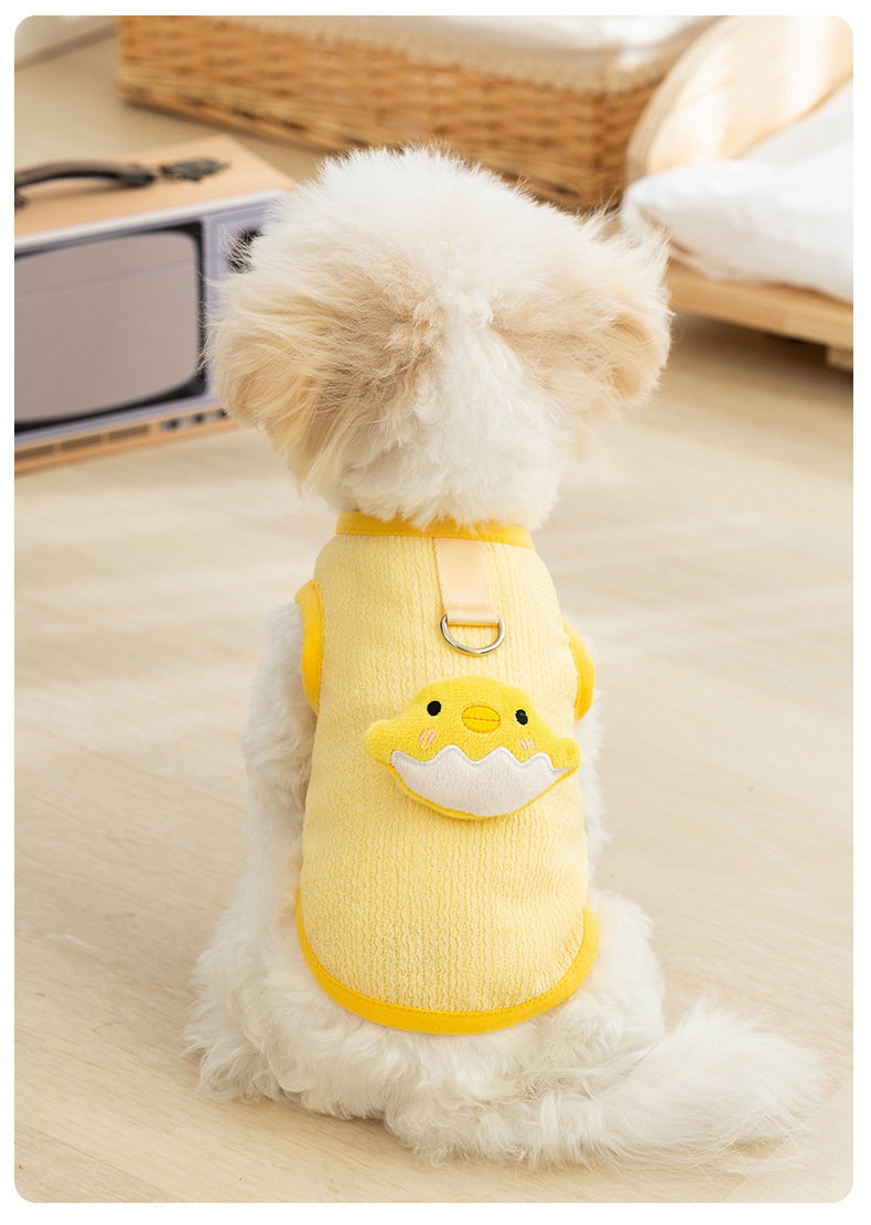 Primavera y verano perro de dibujos animados lindo pollo tridimensional remolque chaleco de dos patas gato delgado peluche ropa para perros
