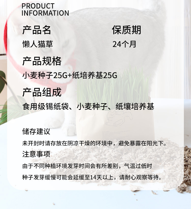 Nuevo producto pasto para gatos perezoso, trigo, cultivo sin suelo, bolsa de pasto para gatos, cabello para ayudar a la digestión, bocadillos para gatos, pasto para gatos al por mayor