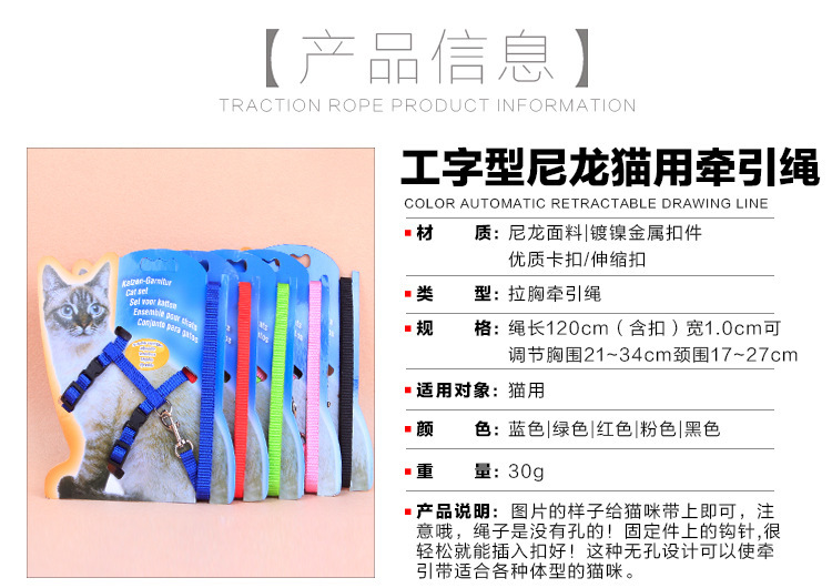 Cuerda de tracción para gatos, cuerda para gatos cómoda y transpirable, cuerda para caminar para gatos, correa para gatos en forma de I, cabello lacio de fábrica
