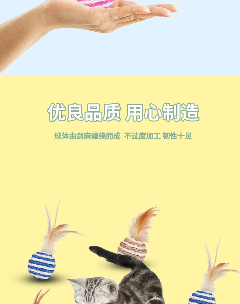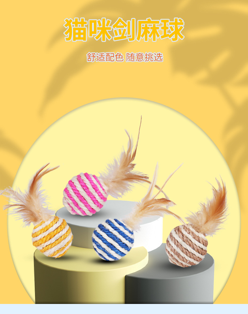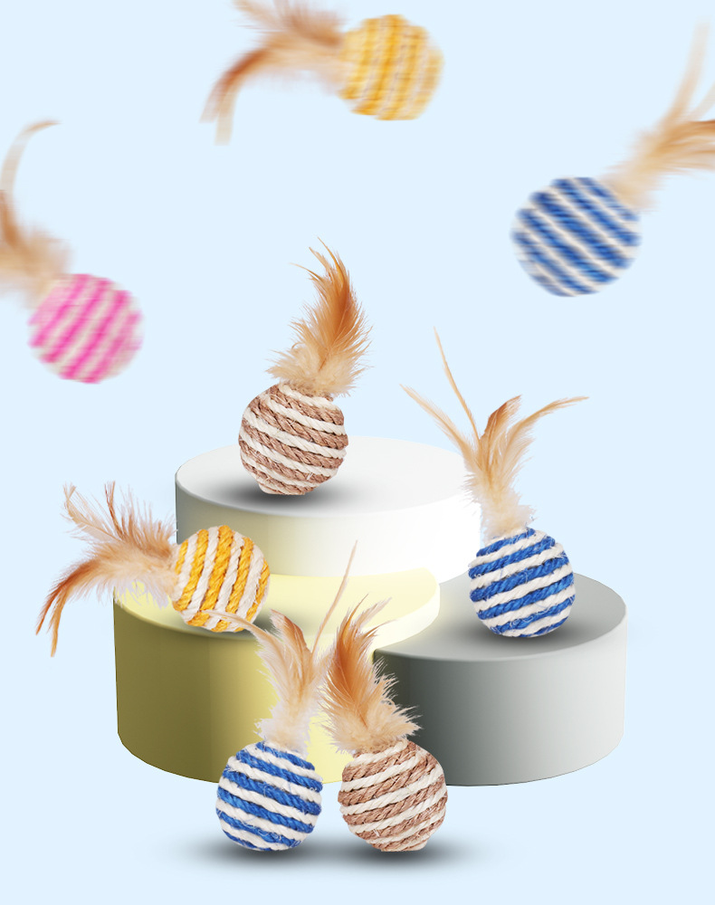 Suministros para mascotas Amazon popular pluma de la bola del gato de juguete multi-color opcional auto-Hola Interactivo gato de juguete
