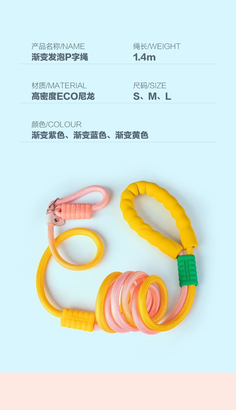 Cuerda de tracción para perros Cuerda para perros pequeños y medianos para pasear a los perros Cuerda de tracción de color del arco iris de espuma a prueba de explosiones Cuerda P multifuncional diagonal