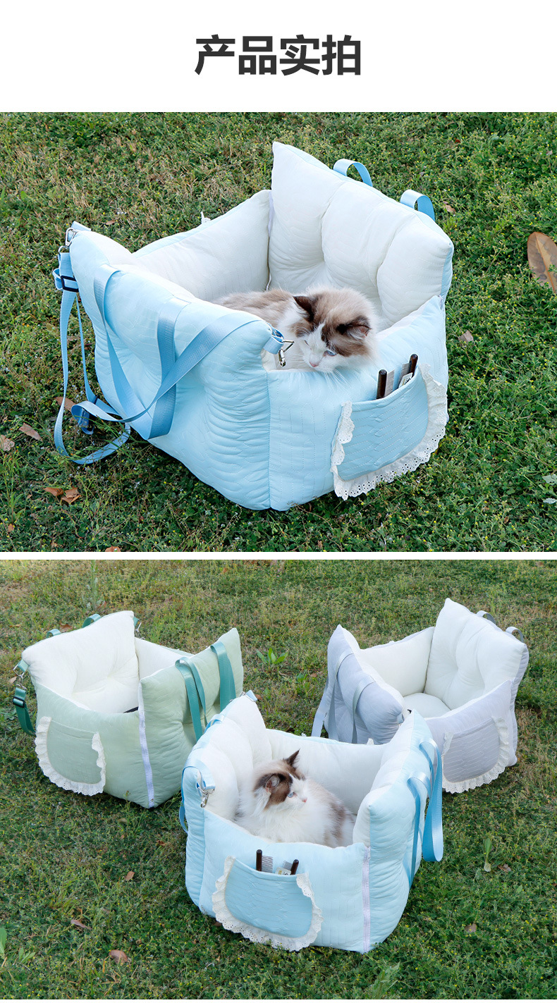 Gatos personalizados que salen en el nido del coche, seda de hielo, sensación fresca, mascotas, gatos, perros, perreras, gatos, gatos, nidos para gatos fijos en diagonal