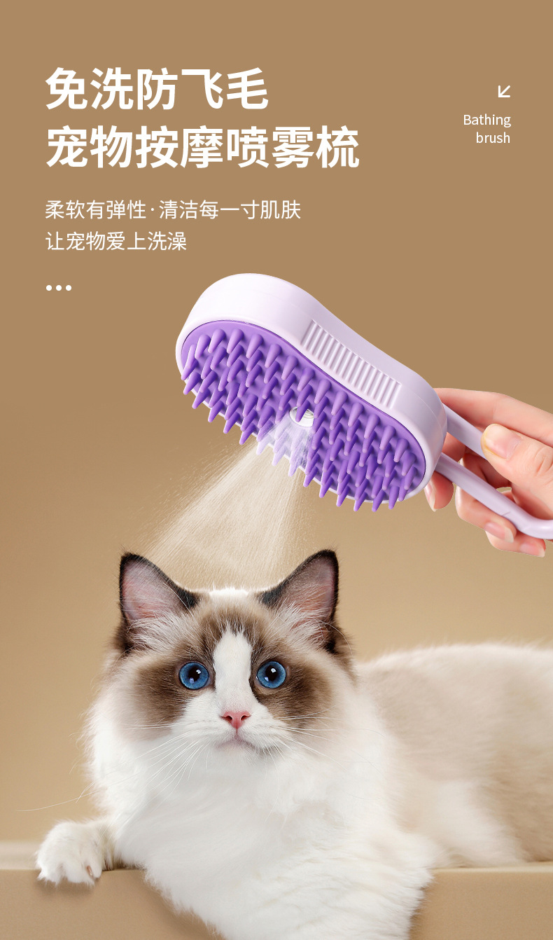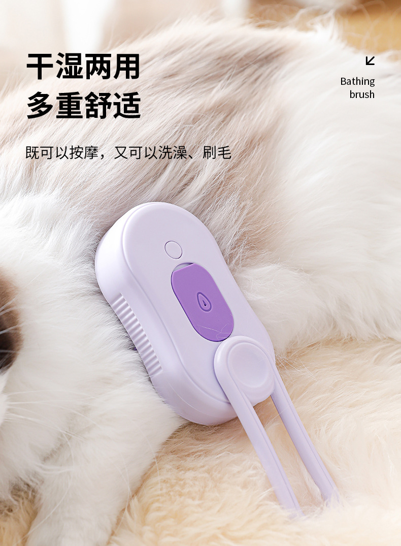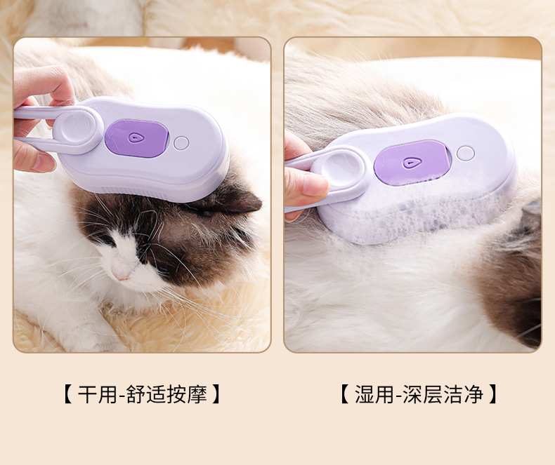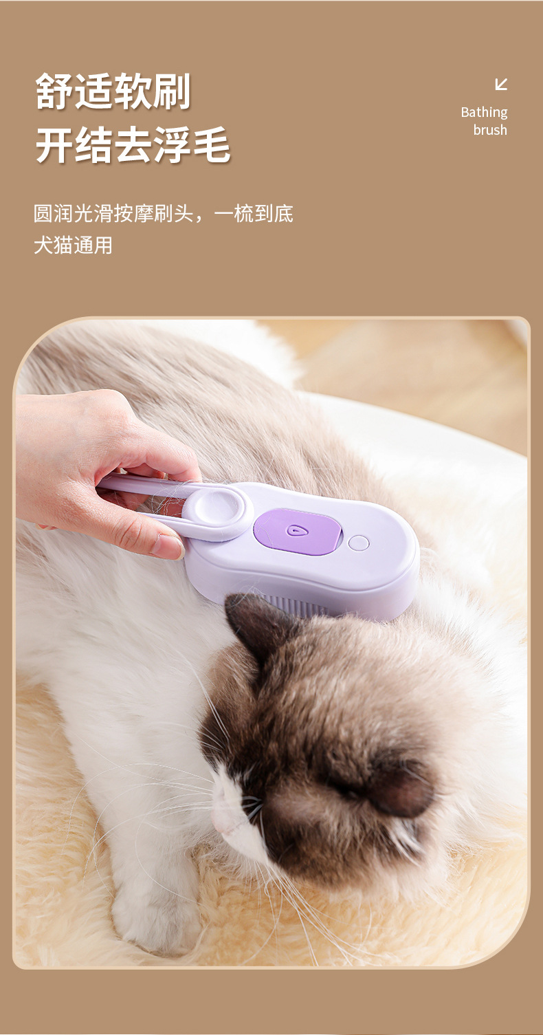 Limpieza de mascotas, peine de depilación en aerosol eléctrico para gatos y perros, peine de masaje giratorio en aerosol con una tecla