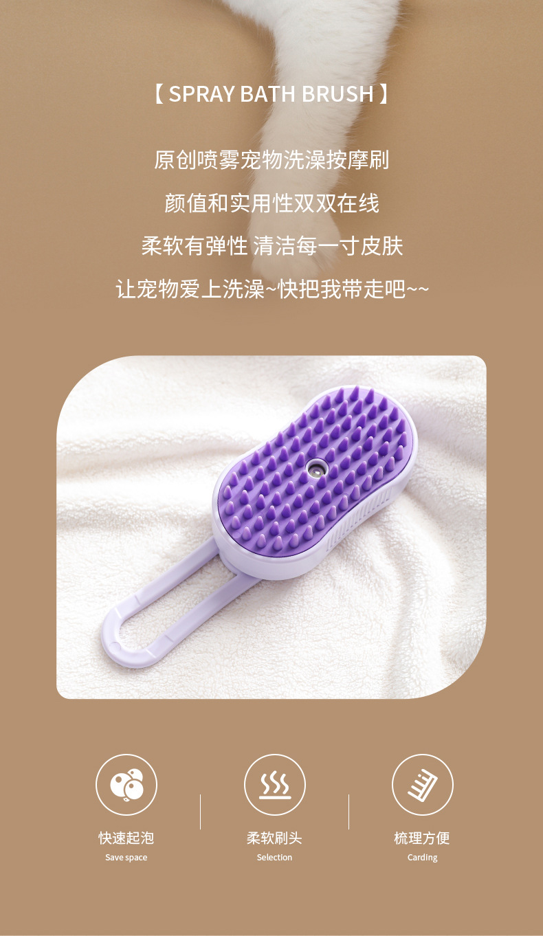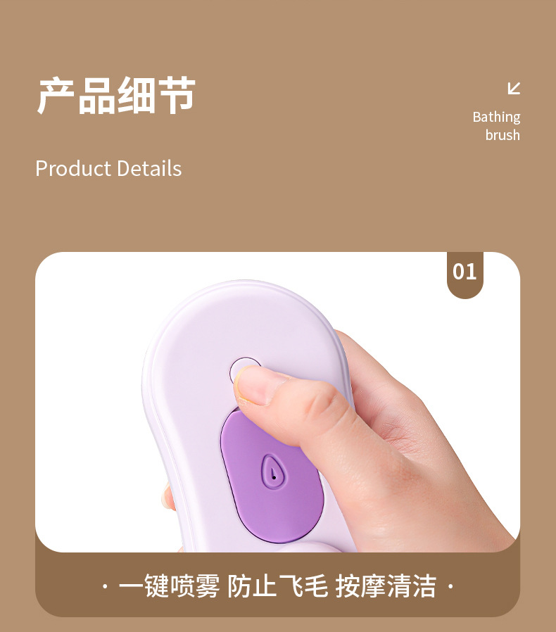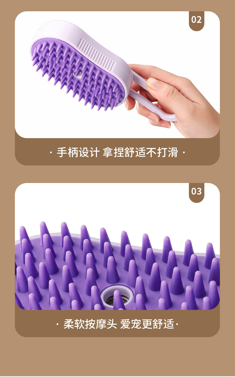 Limpieza de mascotas, peine de depilación en aerosol eléctrico para gatos y perros, peine de masaje giratorio en aerosol con una tecla