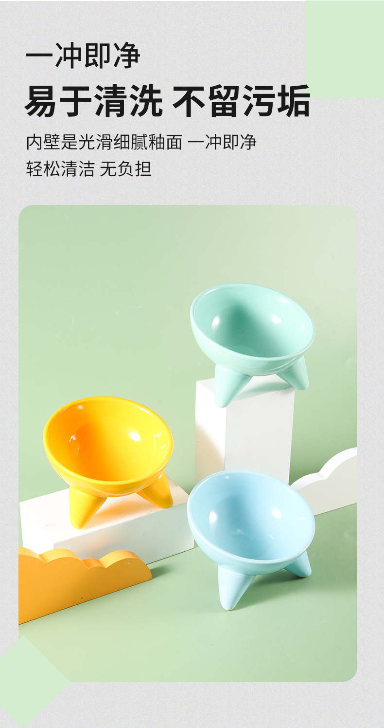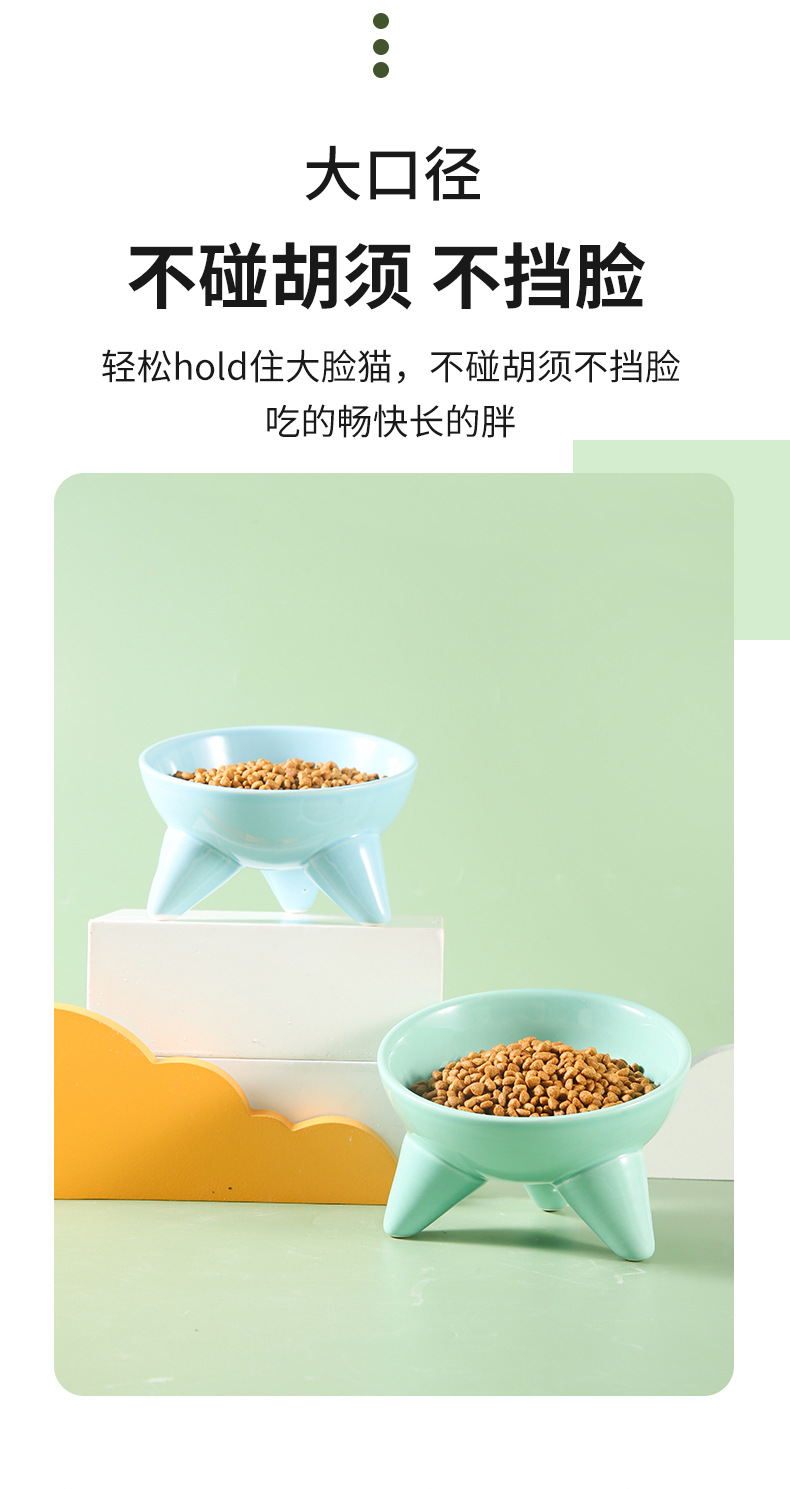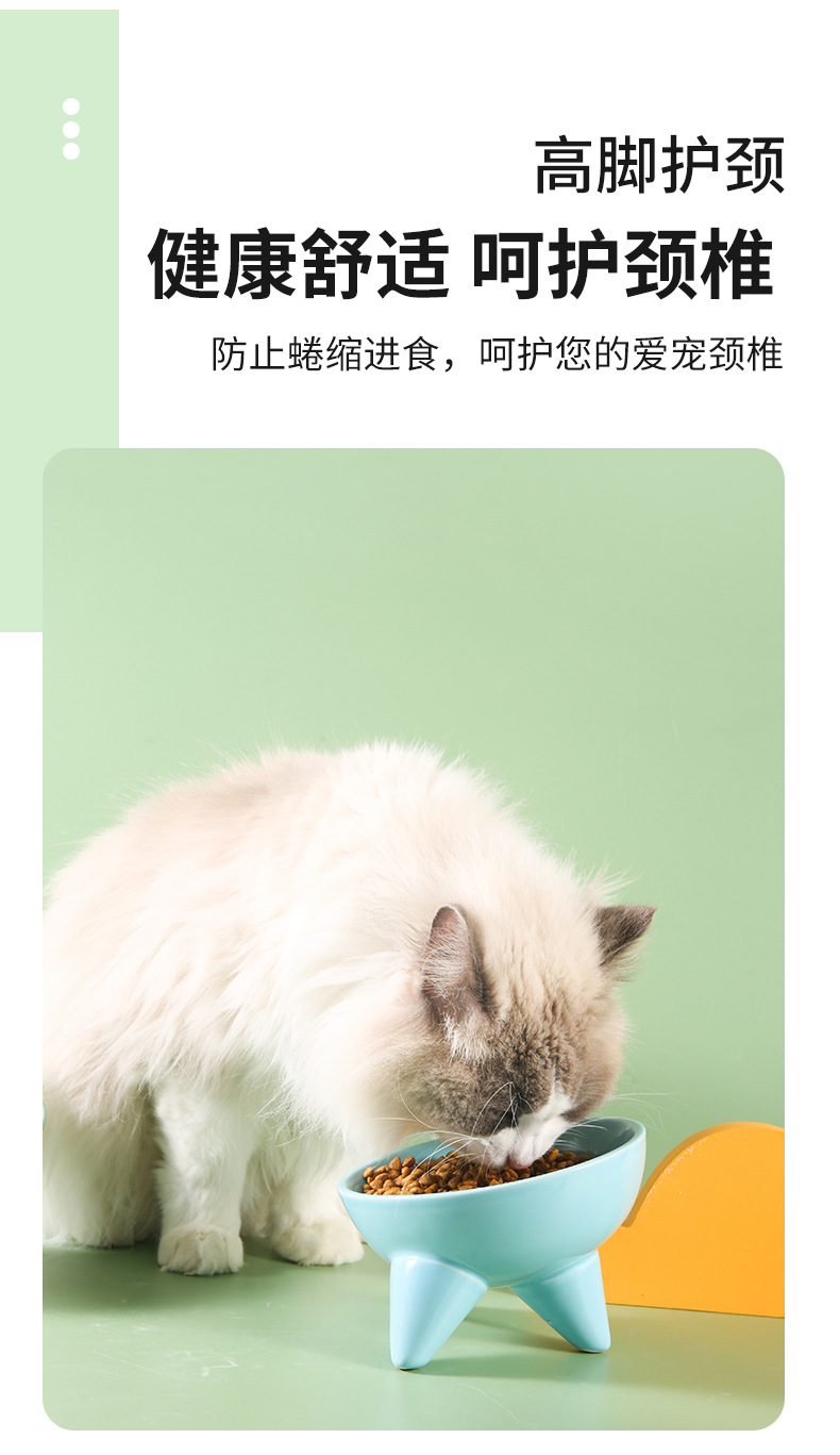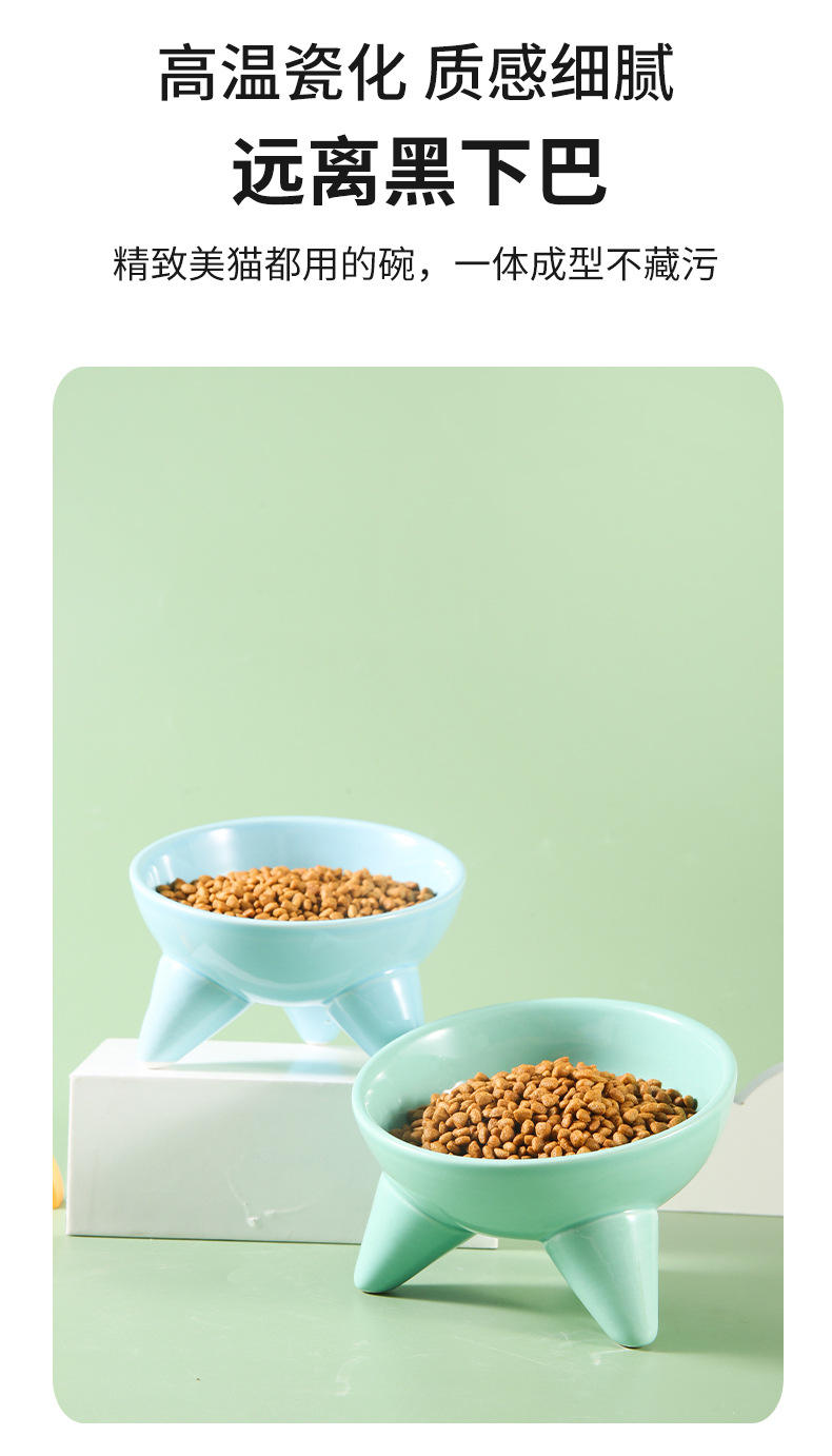 Tazón para gatos Tazón de comida para gatos de cerámica Pies altos, cuello oblicuo, barbilla anti-negra, tazón de arroz para gatos, anti-volcado, tazón de agua potable para perros al por mayor