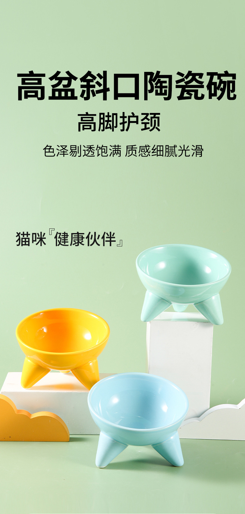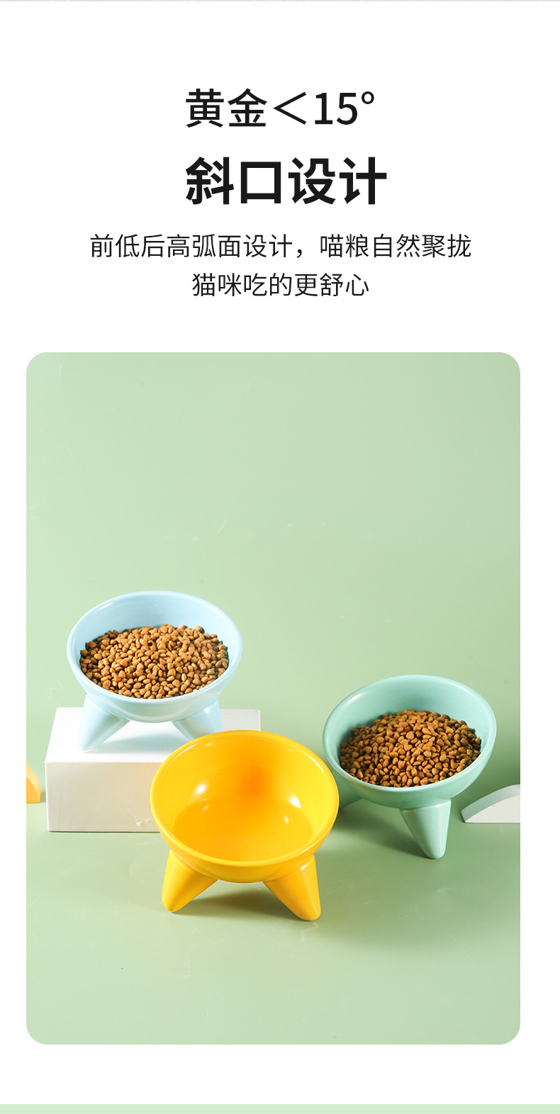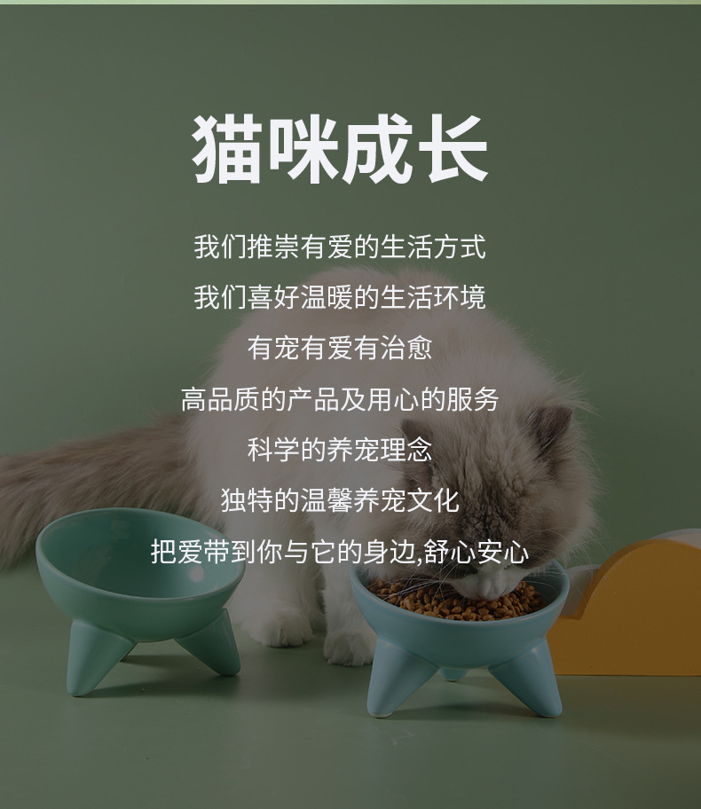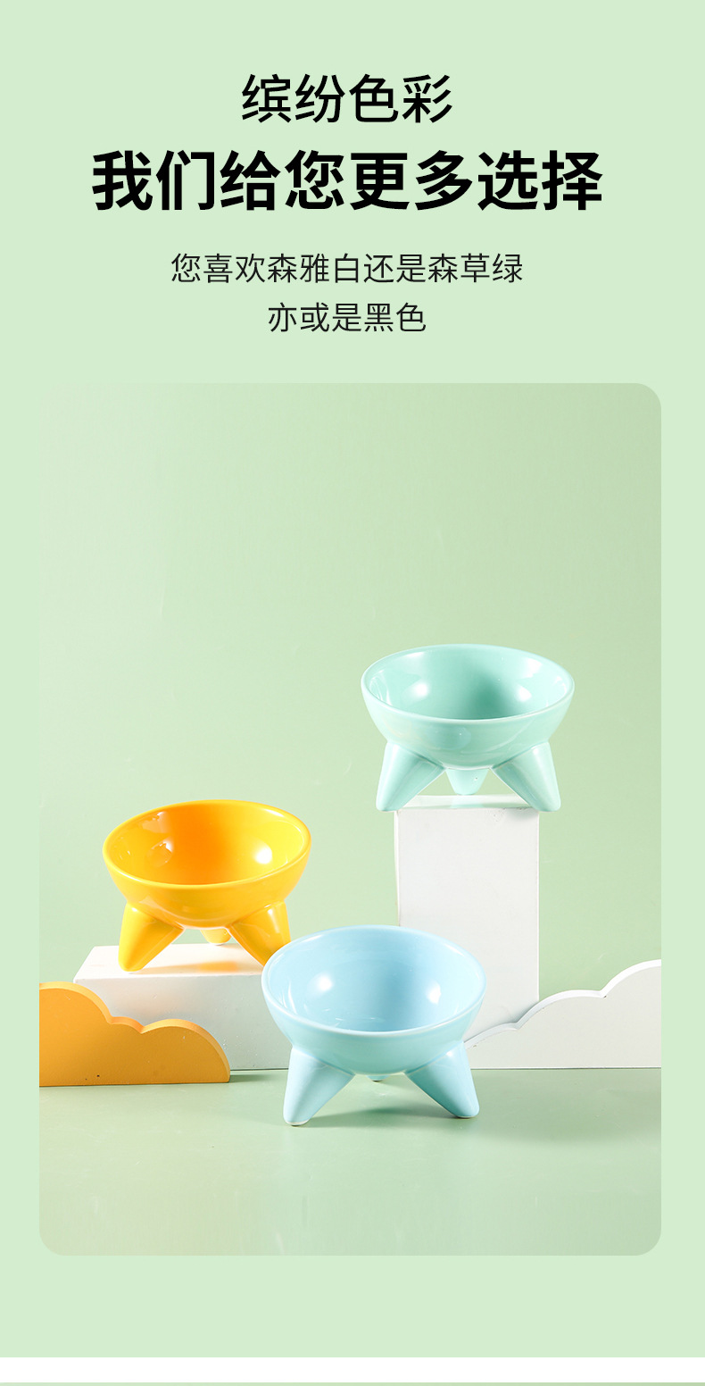 Tazón para gatos Tazón de comida para gatos de cerámica Pies altos, cuello oblicuo, barbilla anti-negra, tazón de arroz para gatos, anti-volcado, tazón de agua potable para perros al por mayor