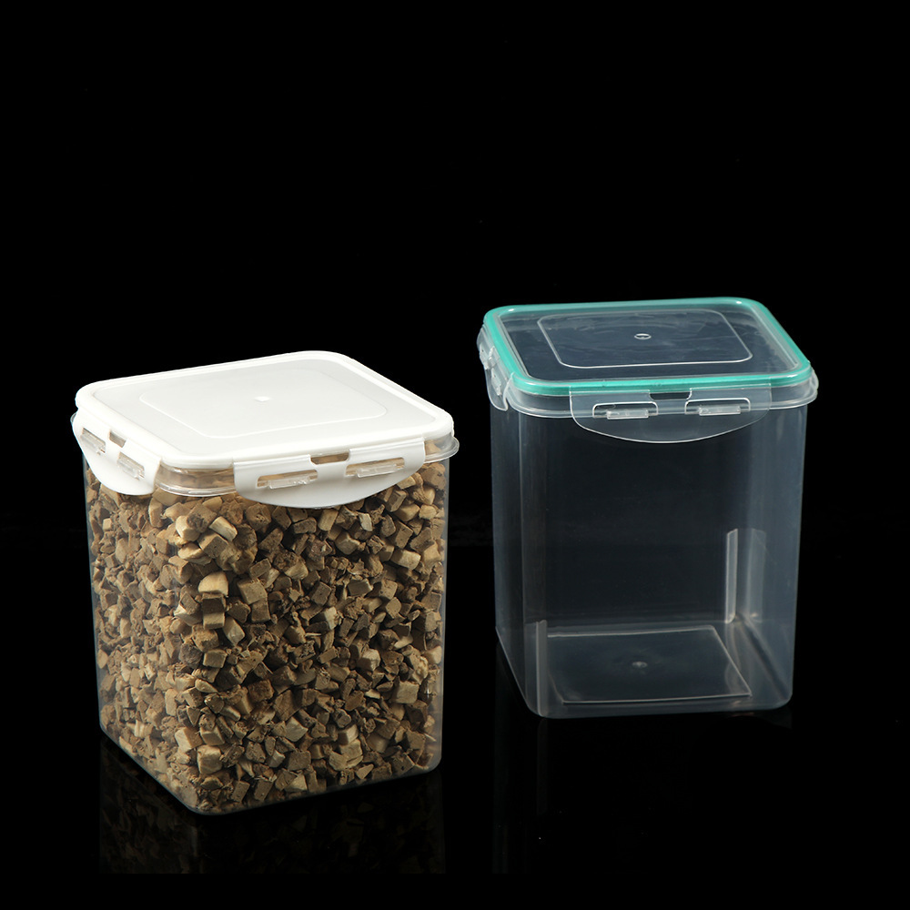 Caja de tiras de gato Cubo de plástico de alimentos cuadrado Caja de almacenamiento de granos diversos Caja sellada de plástico Cubo liofilizado Caja de almacenamiento de alimentos Conservación fresca
