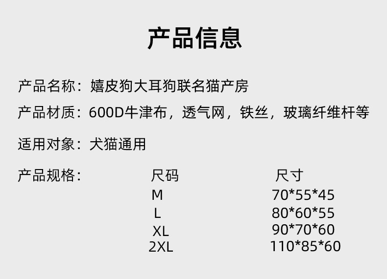 Big Ear Dog marca conjunta primavera y verano cuatro estaciones, sala de partos de gatos rectangular universal, nido de gatos multifuncional para gatos, cerca de tienda de campaña para mascotas