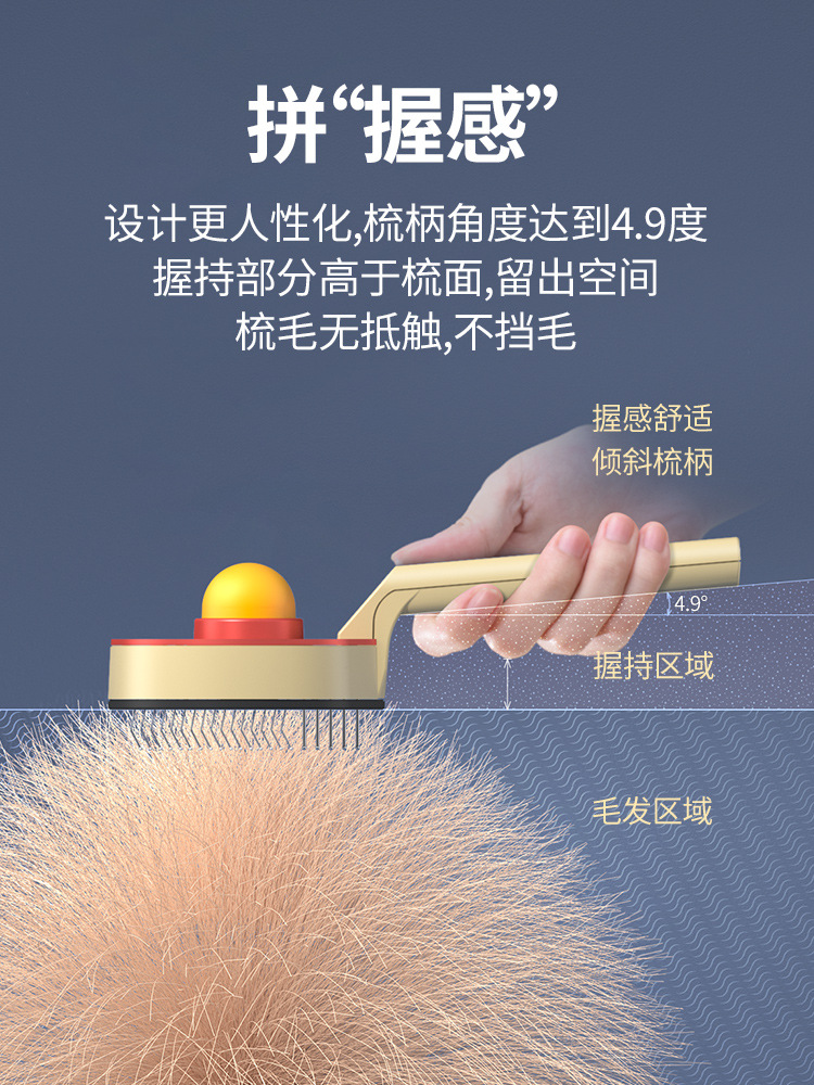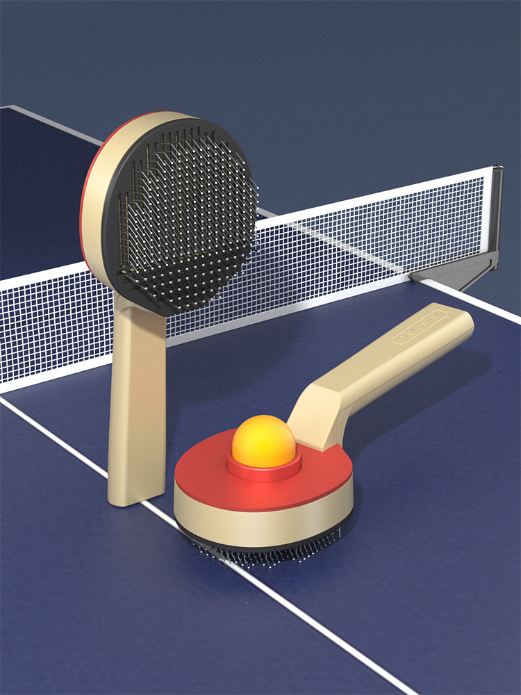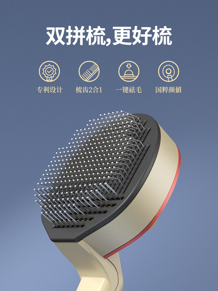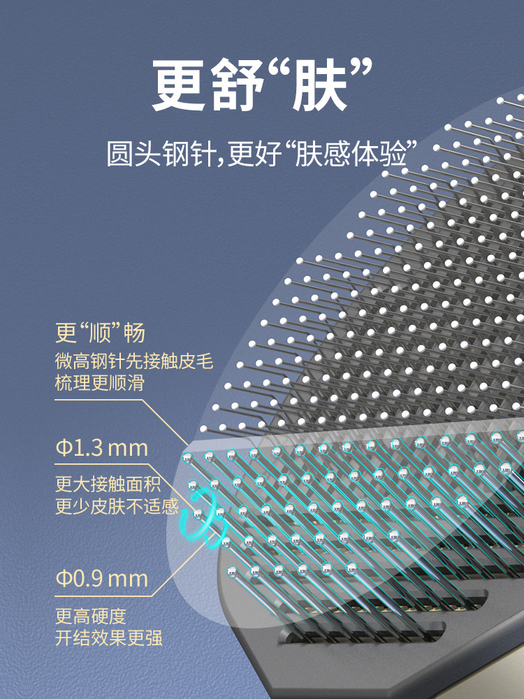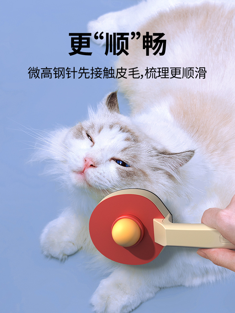Peine para mascotas de ping pong, cabezal de goma de aguja de acero de doble aguja, diseño patentado, cabello flotante, nudo abierto, masaje suave, peine duradero para gatos y perros