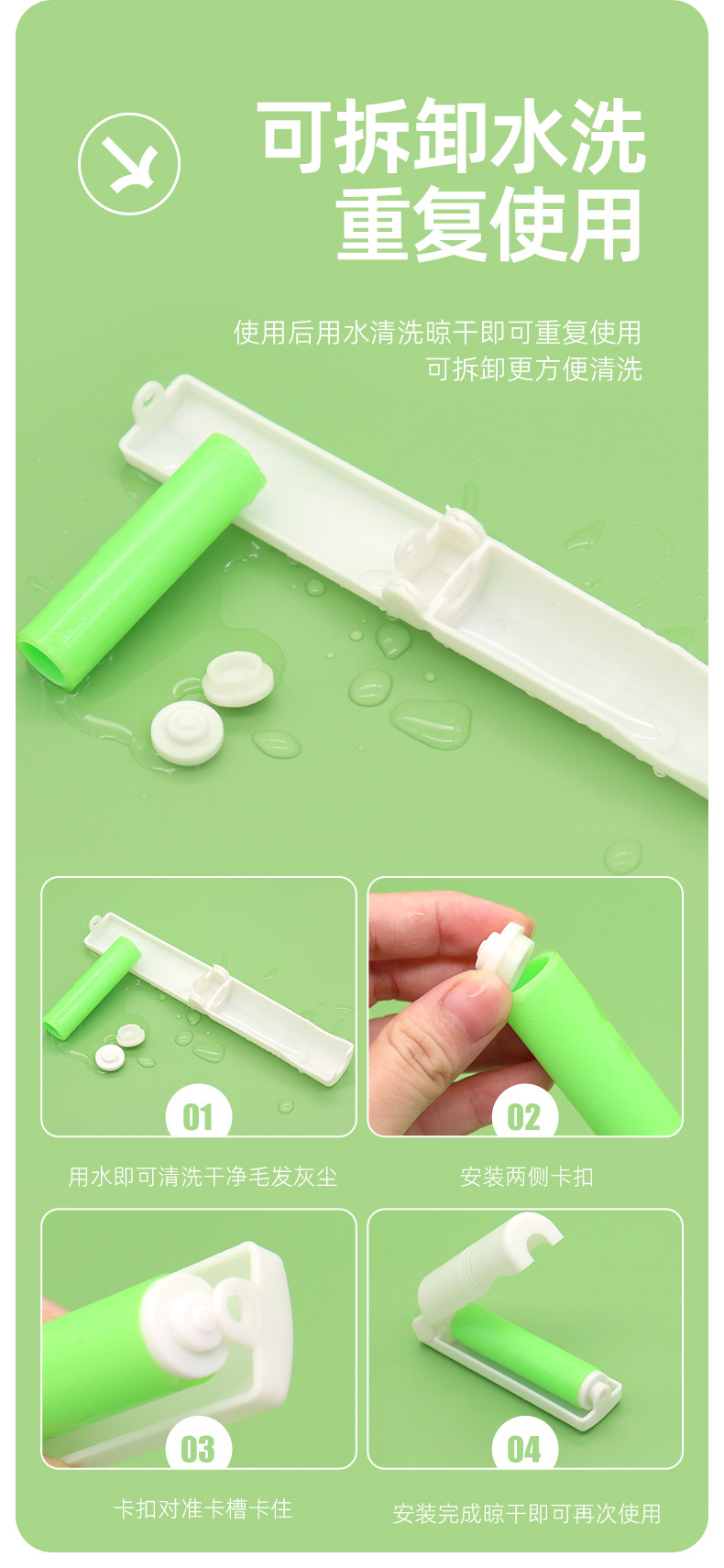 El dispositivo de depilación para mascotas se puede lavar con agua. El dispositivo de depilación doméstica se reutiliza. Cepillo de eliminación de rodillo de eliminación de polvo de ropa portátil pequeño