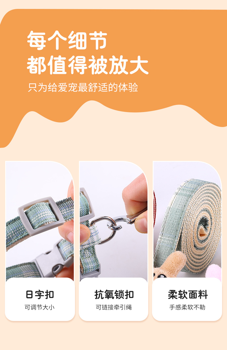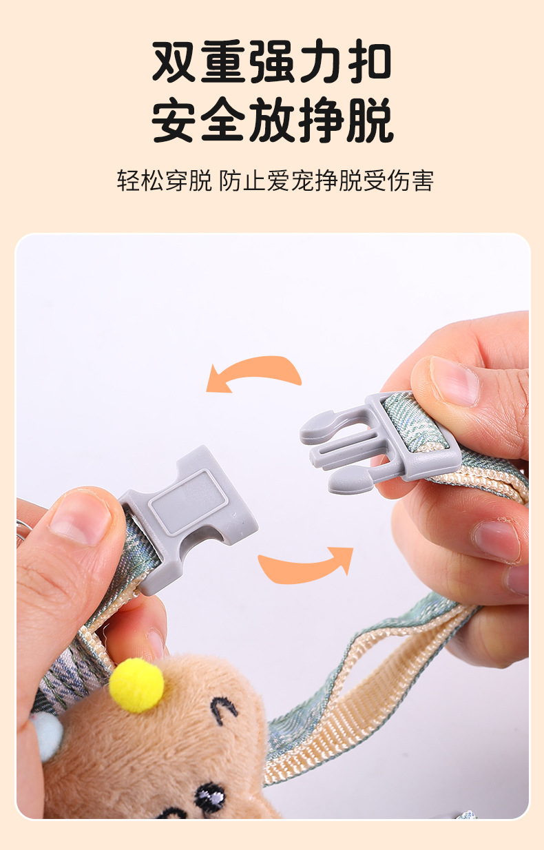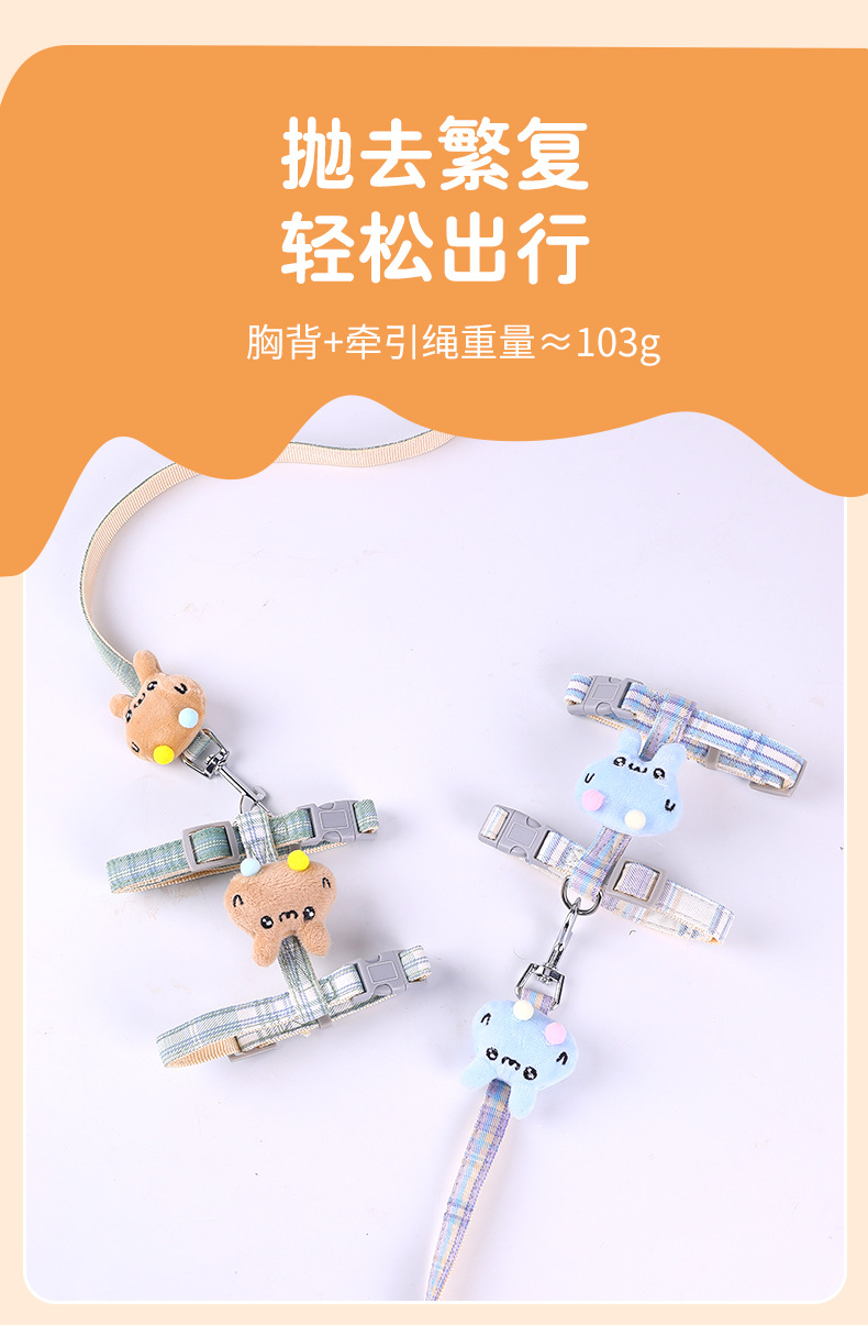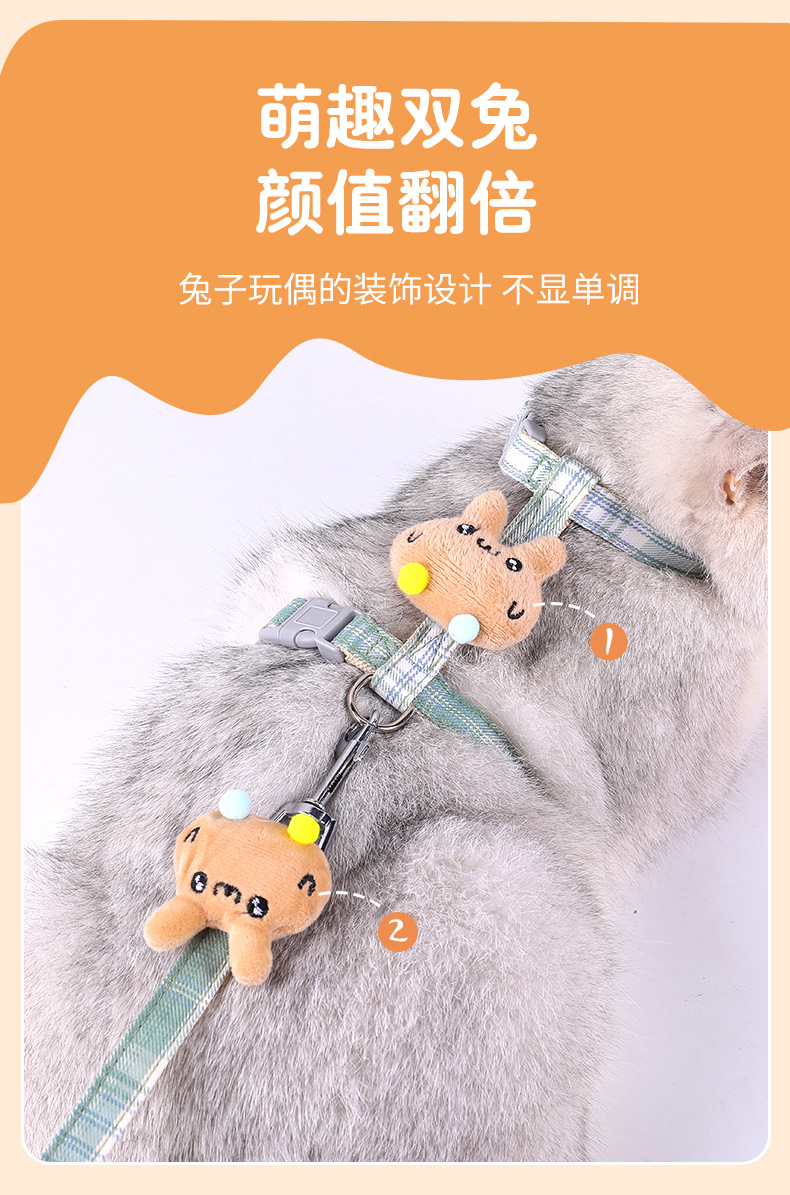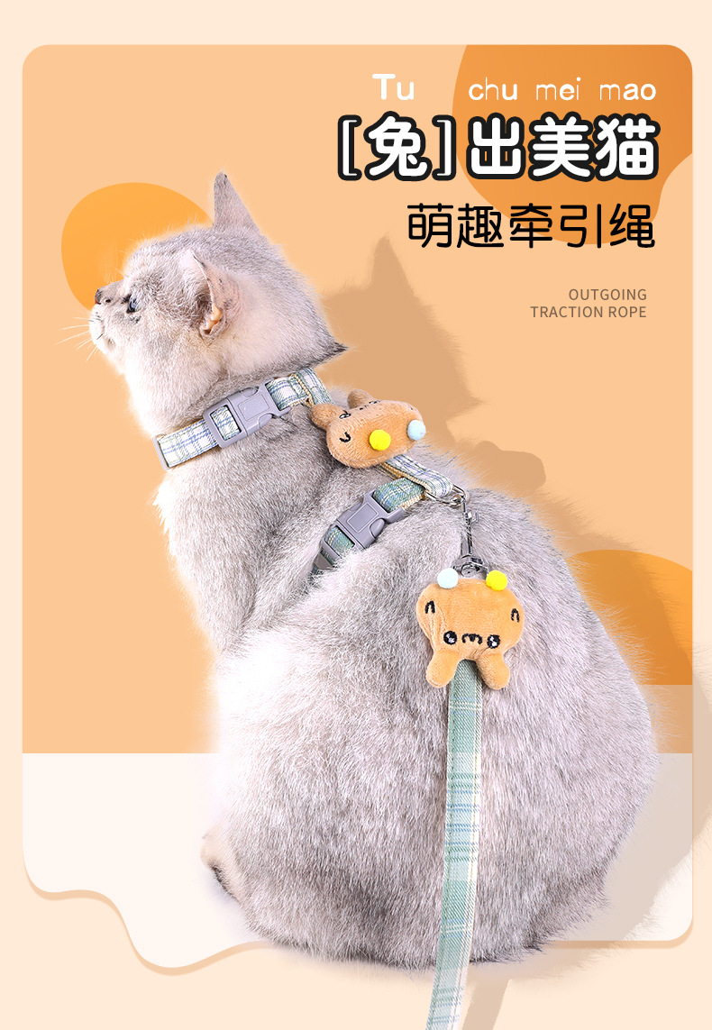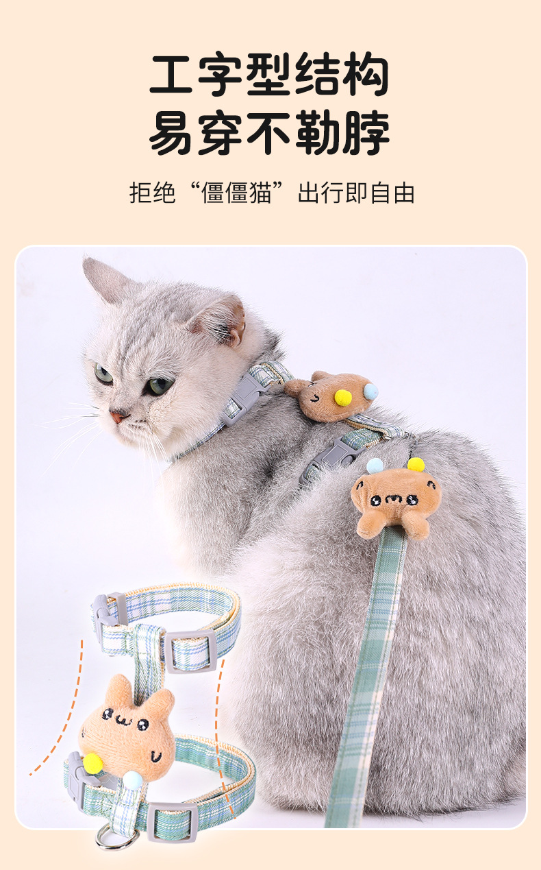 Cuerda de tracción para gatos, cuerda especial para caminar para gatos para evitar el liberarse, cadena de gato en forma de I, correa de gato ajustable, espalda de gato de dibujos animados