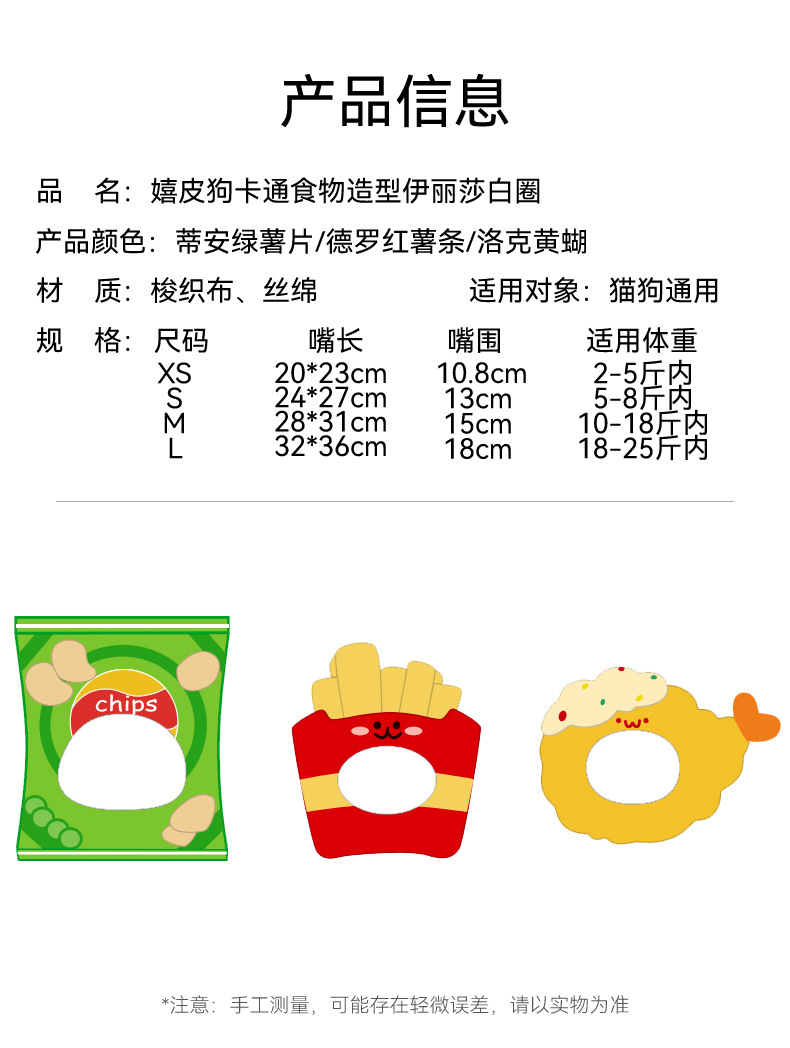 | Talla | Camarón mariposa amarillo Locke,Papas fritas,Patatas fritas verdes,Flores rosadas,Flores azules,Flores moradas,Lindo pato,Círculo del arco iris,Cerdo rosa,Lindo patito,Osito lindo |