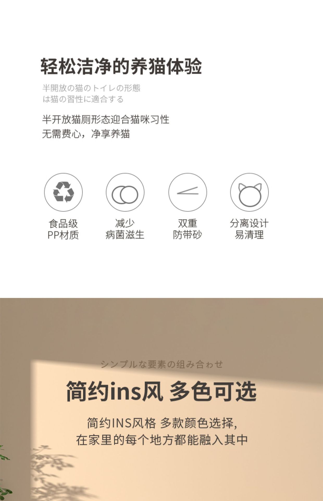 | Colores | Arenero de orejas [blanco] pequeño,Orejas Caja de arena [Gris] Trompeta,Arenero de orejas [grande] blanco,Arenero de orejas [grande] gris,Caja de arena para gatos con orejas mejorada [caqi amarillo] pequeño,Lavabo de arena para gatos con orejas mejoradas [caki amarillo] grande,Lavabo de arena para gatos con orejas mejoradas [Gale Green] Trompeta,Lavabo de arena para gatos con orejas mejoradas [Gale Green] grande,Modelo azul semicerrado ordinario,Rosa semicerrado ordinario |