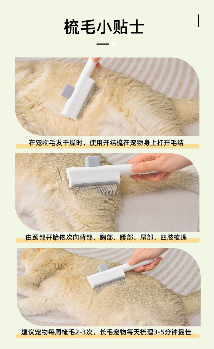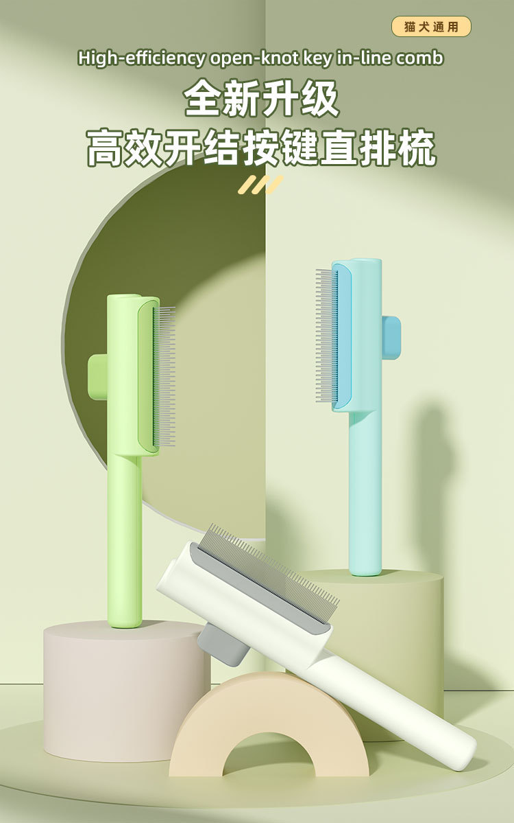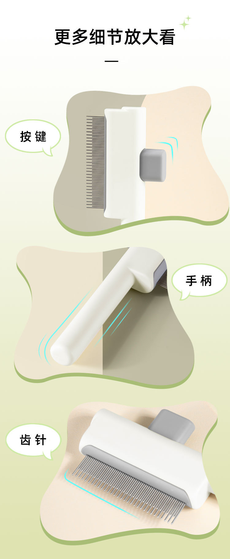 Peine transfronterizo para mascotas con un solo botón para abrir el nudo y eliminar el artefacto de pelo flotante Peine para gatos Peine autolimpiante Peine para perros