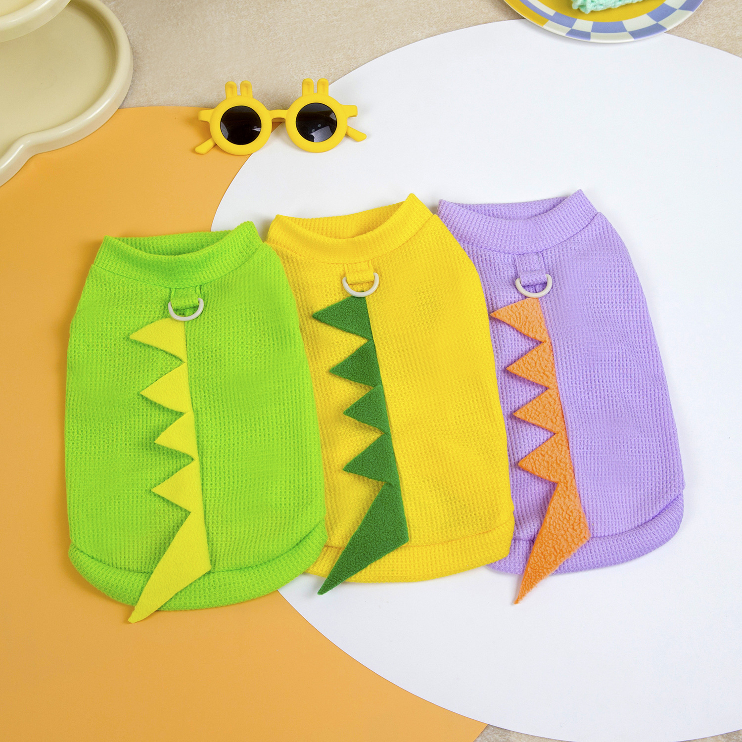 Nueva ropa para perros de primavera y verano de Amazon, linda ropa de protección solar delgada de dinosaurio, chaleco anti-caída para perros y gatos