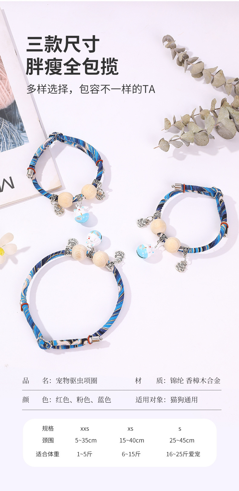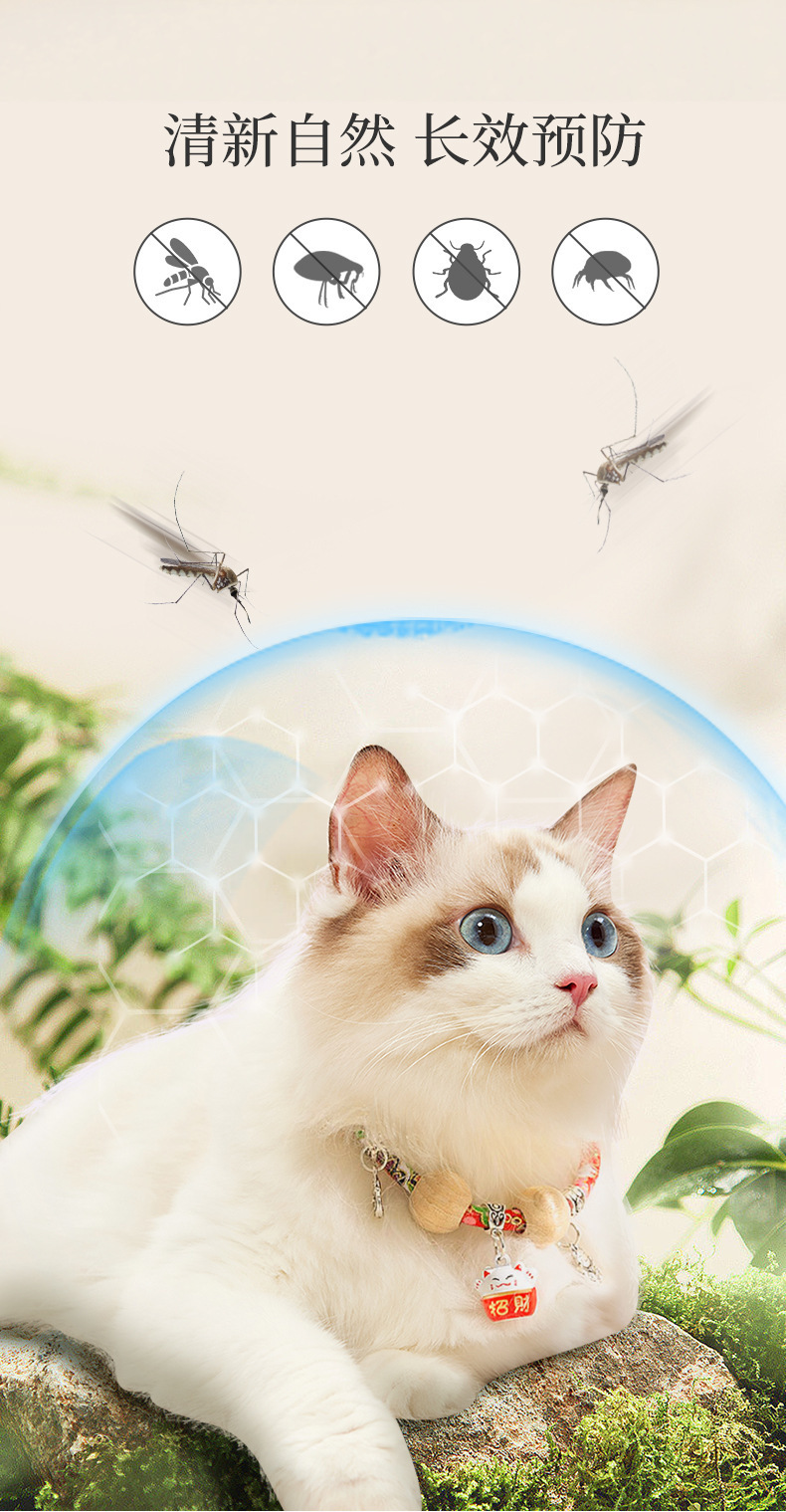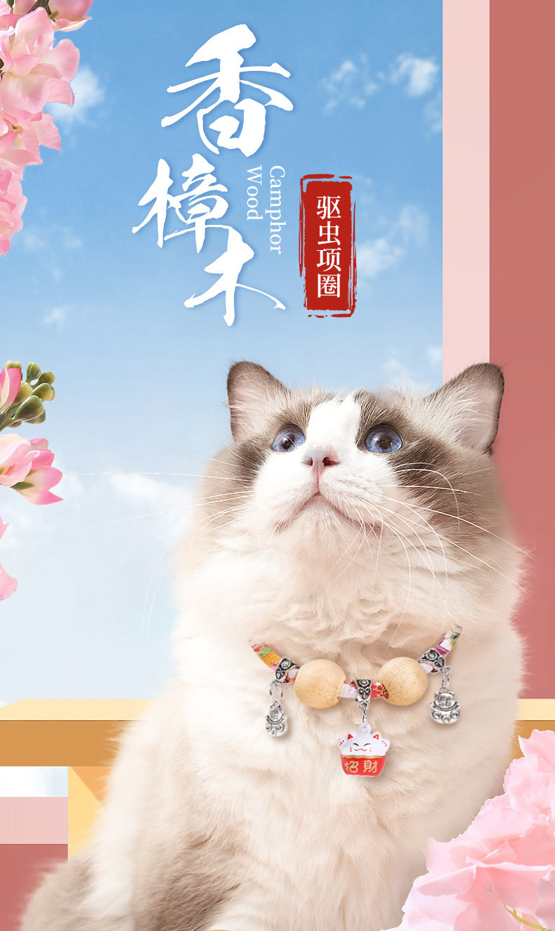 Collar para mascotas con campana Collar para mascotas Collar para gatos Collar repelente de pulgas para gatos Collar para mascotas de madera de alcanfor