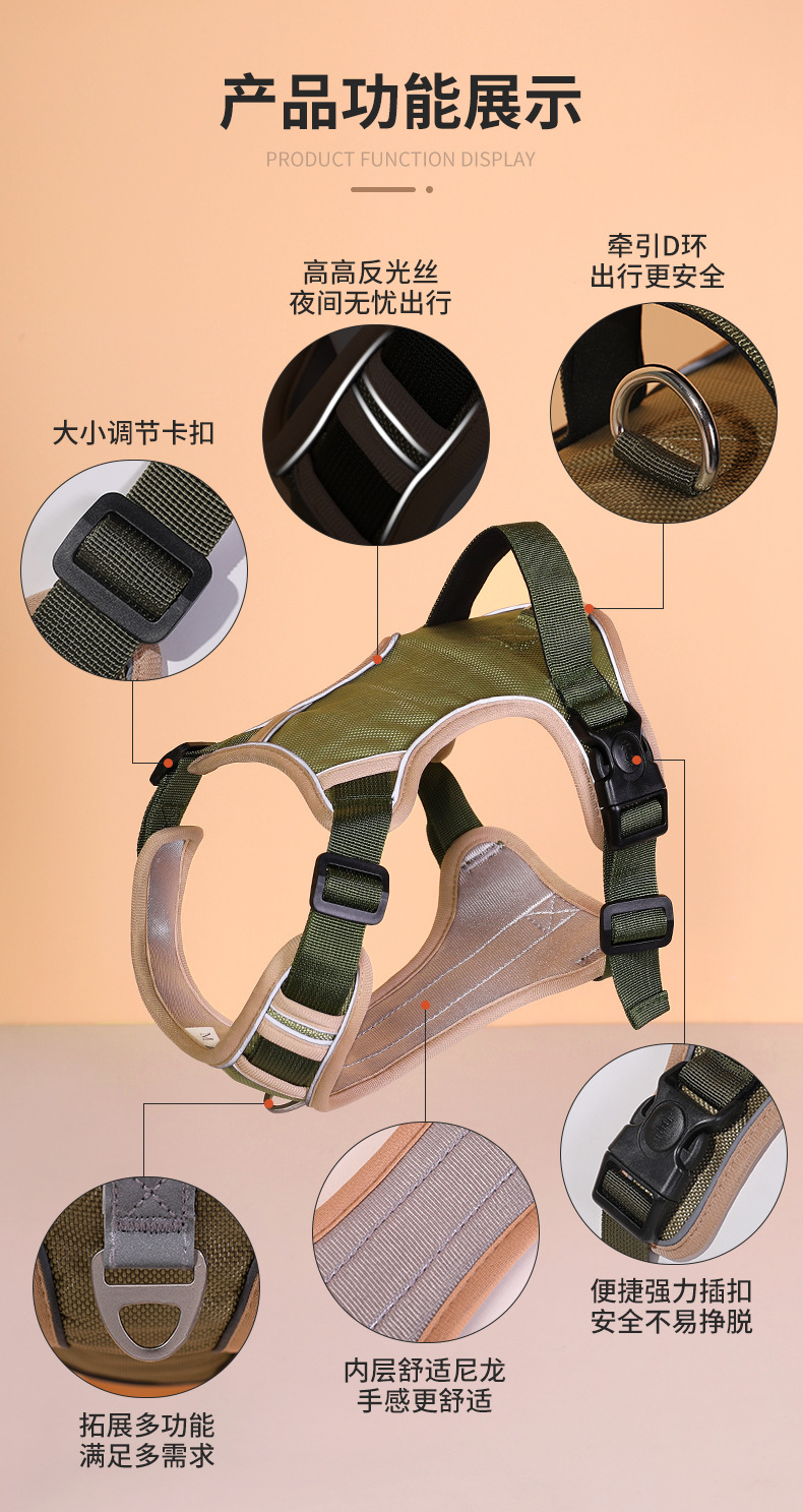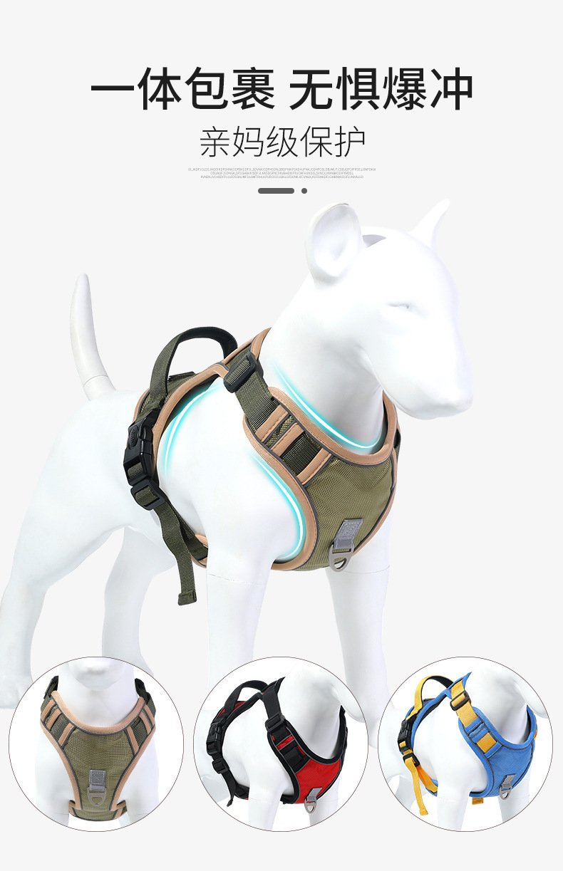 Explosión transfronteriza, pecho y espalda de perro, anti-liberación, correa para el pecho de perro mediano y grande, correa reflectante a prueba de explosiones, cuerda de tracción reflectante al por mayor