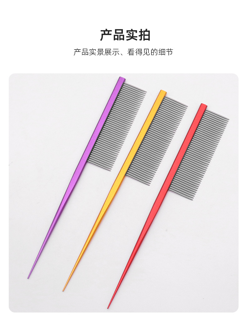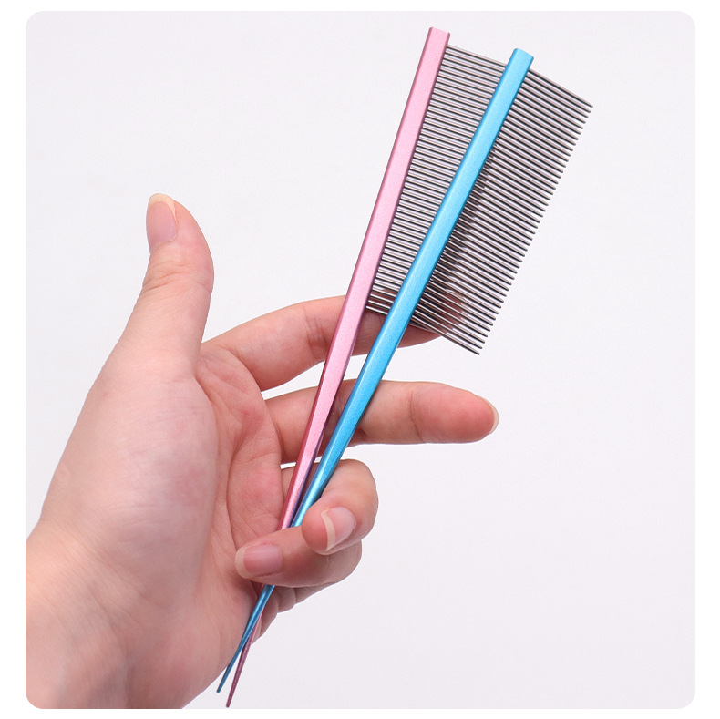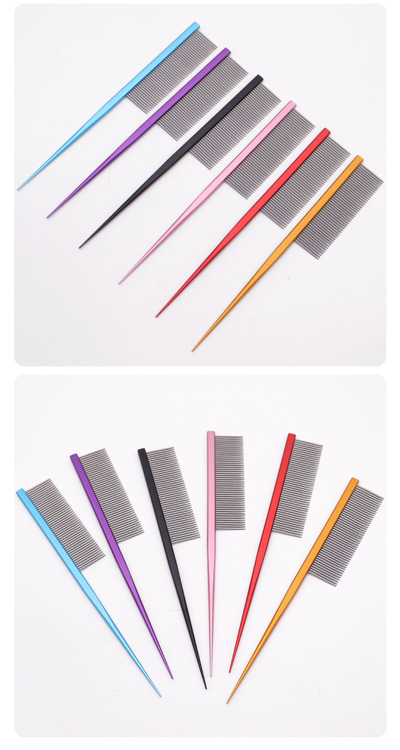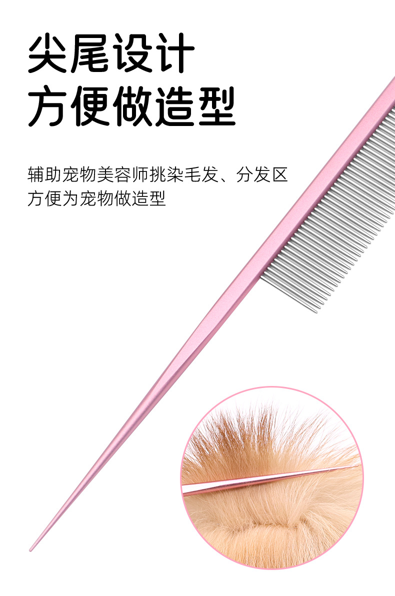 Peine de gato, artefacto, peine de cola puntiaguda de acero inoxidable, peine para mascotas, peine de pelo de dientes densos, peine de perro de línea dividida